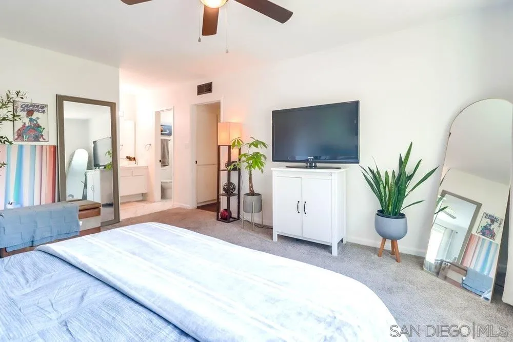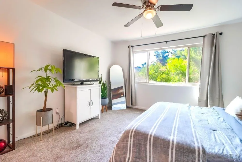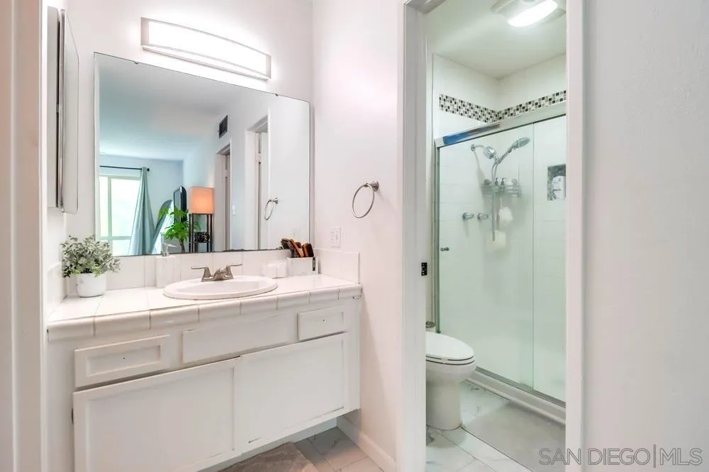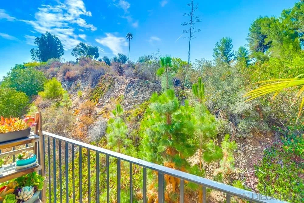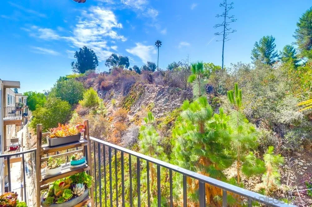 GORGEOUS end-unit w/amazing hillside views perched on the 3rd floor-with no neighbors above you for ultimate privacy! Step on to your private patio and soak in the picturesque views, creating a peaceful backdrop for morning coffee or evening relaxation. Inside you'll find a fully modernized kitchen w/beautiful finishes, upgraded bathrooms and an inviting light drenched interior that has been thoughtfully refreshed. Both spacious bedrooms provide comfort & flexibility and an abundance of storage ensures everything has it's place! This unit is situated close to SDSU and offers easy freeway access, making commuting a breeze. Enjoy being close to the community pool where you can relax and unwind on warm San Diego days. This unit with its desirable location, private setting and stylish updates offers the ideal blend of convenience and a beautiful place to call home.