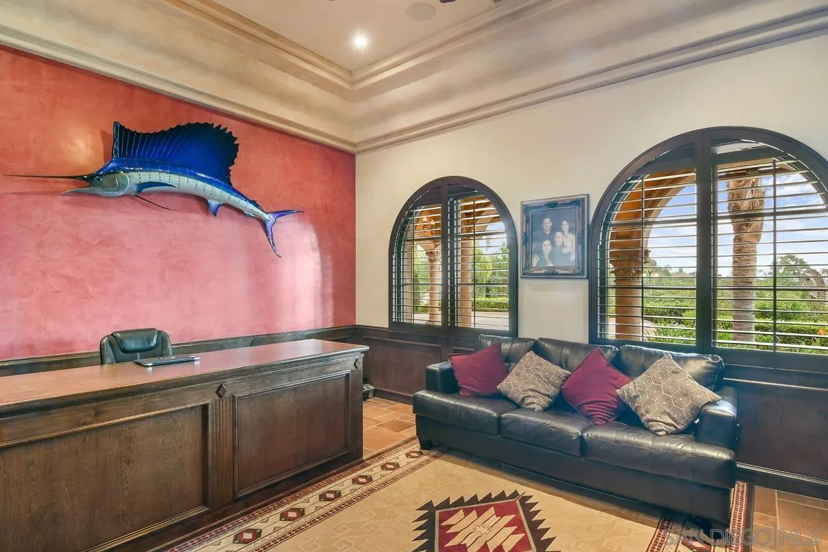 This unique Spanish-Mission hacienda was crafted to be both a beautiful, spacious home and a fully functional ranch. The design centers on grand scale and a connection to the outdoors. Inside, the ceilings create a sense of openness, with most rooms at 14 feet and the main living areas soaring to 20 feet. Some walls and ceilings have a hand-applied Venetian plaster finish, adding a subtle texture that catches the light and brightens each space. The nearly 7-acre property is as much a part of the home as the house itself. It includes a working bard of over 1000 sq ft, three stables for boarding, and a dedicated riding ring. Beyond the equestrian facilities, you'll find an orchard, coops and plenty of space for other activities. A pool and hot tub provide a peaceful spot to relax, making the property a true retreat. This is a rare chance to own a home where you can enjoy a comfortable, elegant lifestyle and a connection to the land.