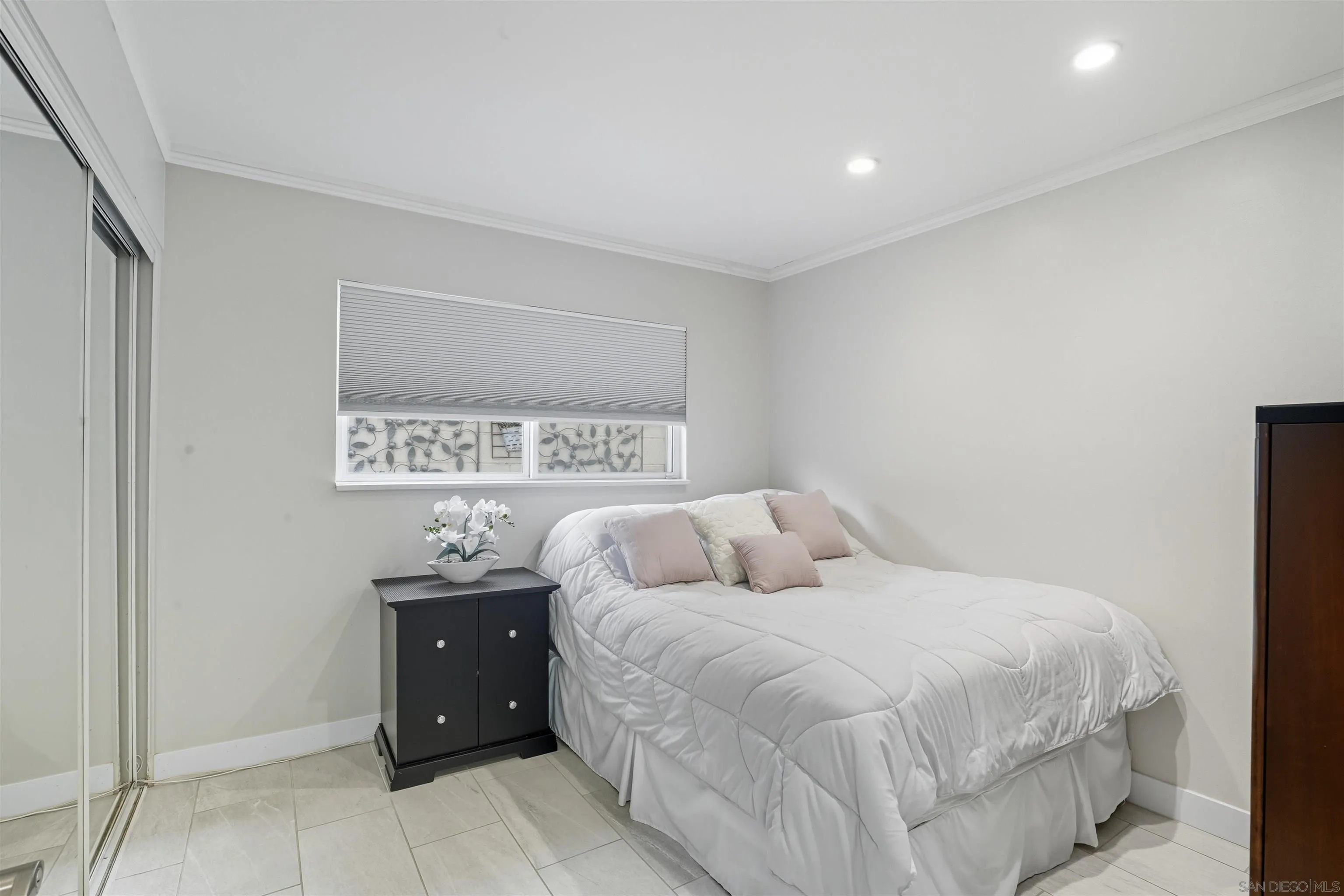 Contemporary 3 bedroom, 3 bath, 1,892 square foot, single level home located in a quiet Del Cerro cul-de-sac! Dual primary bedrooms with individual bathrooms! In-ground swimming pool with newer pump! Newer roof, skylights and gutters! Newer exterior glass doors! Newer overhead copper plumbing! Artificial turf front and rear! Separate A/C & heating in primary bedroom! Central forced air A/C! Remodeled bathrooms with overhead rain shower, infinity drains, custom floor and wall tile, toilets and floating vanities! Newer paint inside and out! Newer ceramic flooring through out home! Security system with motion sensor lights on exterior! Newer attic installation! Finished garage with epoxy flooring and attic storage! White ledger stone fireplace with blue media glass! Newer kitchen stainless steel appliances, wine cooler and faucet! Crown molding throughout! Newer interior doors!