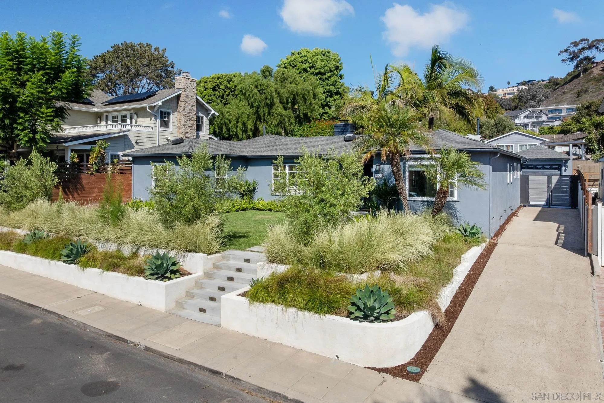 Move in time for Halloween in the best neighborhood. Welcome to one of the most desirable streets in Upper Hermosa, offering prime access to the shops, restaurants, and beaches of Bird Rock. Nestled on a spacious 8,200 sq ft flat lot, this classic U-shaped single-story home blends timeless charm with modern potential. Step inside to discover refinished original hardwood floors, freshly painted interiors, and light-filled living spaces that seamlessly flow to the beautifully landscaped front and back yards — perfect for entertaining or enjoying quiet coastal evenings. With 3 bedrooms and an optional 4th, there's flexibility for a home office, playroom, or guest room. Enjoy year-round gatherings around the outdoor fire pit, and take advantage of the exceptional indoor-outdoor flow that defines Southern California living. Whether you're relaxing as-is or envisioning the future, this property includes nearly-approved plans for a remodel and addition, giving you a unique opportunity to expand. Room to add a pool, ADU, or convert the garage — the possibilities are endless. A true gem in La Jolla's most coveted neighborhood, this is single-story living at its finest.
