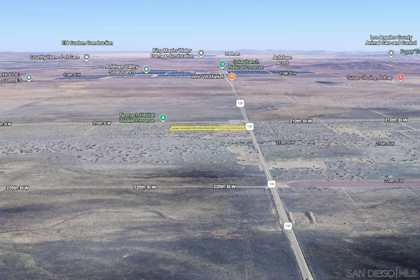 Enjoy wide-open space and convenience with this 9.77-acre property in Lancaster, Los Angeles County! It’s surrounded by scenic desert views and peaceful open skies, offering both comfort and opportunity. With power lines nearby, you’ll have a convenient head start for future plans. Located just west of Lancaster, the property is within easy reach of Apollo Community Regional Park, Antelope Valley Poppy Reserve, and downtown Lancaster’s shops and restaurants. Whether you’re looking to invest, build, or simply enjoy the outdoors, this location gives you a great mix of nature and accessibility. A great spot for those who appreciate space, quiet, and convenience!