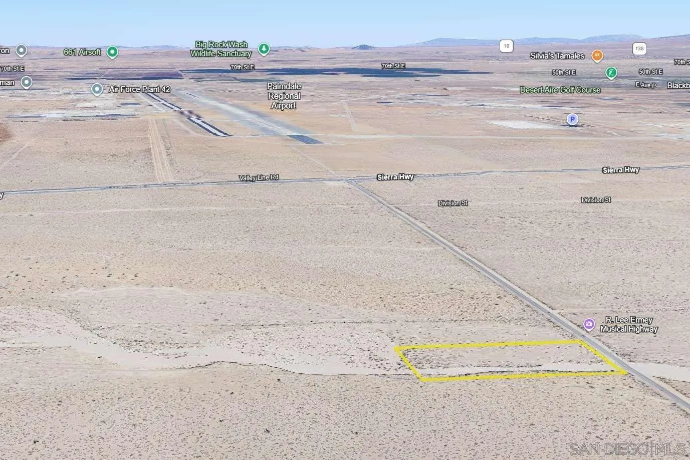 This 4.70-acre property in Palmdale, Los Angeles County, offers excellent potential with its Light Industrial zoning, paved road access, and power lines nearby! Its location makes it easy to develop for business or investment purposes, providing both accessibility and convenience. With essential infrastructure in place, it’s a strong foundation for future growth. The property sits near Palmdale Regional Airport, Antelope Valley Mall, and major routes like Highway 14, giving you quick access to shopping, transportation, and key amenities. The surrounding area includes growing business hubs and community services, adding to the land’s value. A versatile location like this is a great opportunity to bring your plans to life!