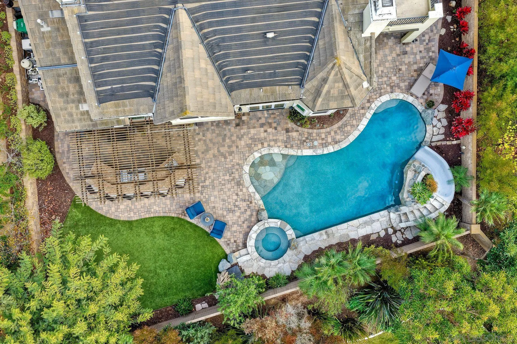 Stunning and highly appointed, this exceptional 5-bedroom, 4.5-bath residence offers 4,225 sq ft of refined living in one of Carlsbad’s most desirable communities, complete with owned solar. Pride of ownership radiates throughout this bright, open-concept home, ideally situated on a spacious corner lot and meticulously upgraded to impress even the most discerning entertainer. A convenient bedroom with ensuite bathroom on the first floor provides flexibility for guests or multigenerational living. The home also features an upstairs spacious open loft, perfect for an additional living area, media room, or play space. The heart of the home is the professional chef-inspired kitchen, showcasing sleek stainless Dacor appliances, an expansive island perfect for gatherings, and generous counter space designed to elevate your culinary creations and hosting experiences. The resort-style backyard is an entertainer’s dream—complete with a fully equipped outdoor kitchen, sparkling pool with waterslide and grotto, and multiple spaces for dining, lounging, and celebrating outdoors all year long. Retreat to the luxurious primary suite, featuring a spacious layout, an elegantly upgraded bathroom with soaking tub and steam shower, and an oversized walk-in closet offering exceptional storage and comfort. With its thoughtful floor plan, elevated finishes, and unmatched indoor-outdoor living, this home embodies Southern California lifestyle at its finest.