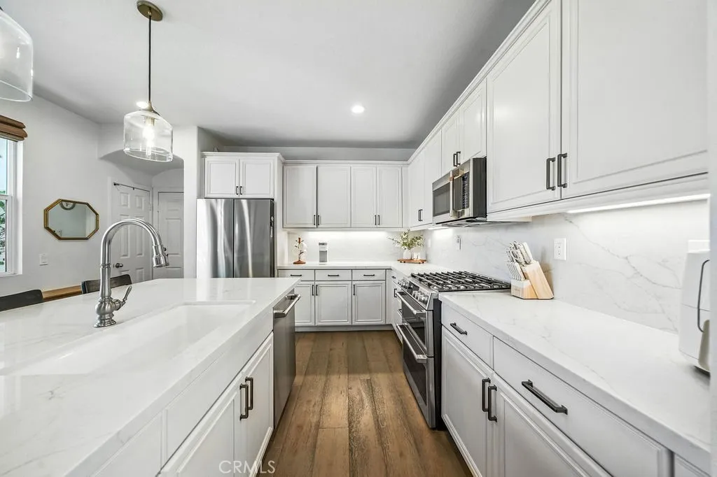 Welcome to 35724 Kittentails Lane, a beautifully updated home located in the highly desirable gated community of Bel Flora in Murrieta! This charming 3-bedroom, 2.5-bath residence offers 1,660 sq. ft of thoughtfully designed living space with a bright, open floor plan perfect for both daily living and entertaining. The gourmet kitchen features granite countertops, white cabinetry, a spacious center island, stainless steel appliances, and a walk-in pantry, all flowing seamlessly into the dining area and cozy family room with fireplace. Upstairs, the spacious primary suite boasts a walk-in closet and a private bath with dual vanities, soaking tub, and walk-in shower. Two additional bedrooms with walk-in closets, a remodeled secondary bath, and a convenient upstairs laundry room complete the second floor. Step outside to your private backyard with a covered patio, ideal for relaxing or hosting gatherings. Bel Flora residents enjoy resort-style amenities, including a pool, spa, playground, picnic areas, and scenic walking paths, all just minutes from shopping, dining, schools, and freeway access. This move-in-ready home combines style, comfort, and convenience! Dont miss the chance to make it yours!