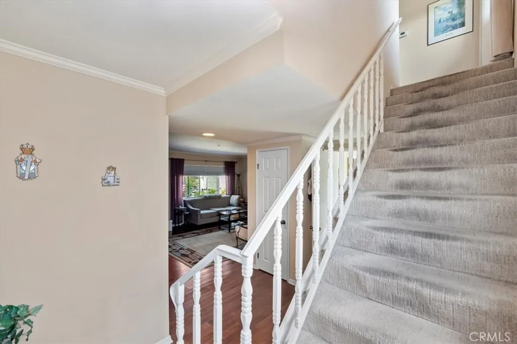 PRICE DROP, LET'S GET THIS SOLD. Rare find! This charming 3 bedroom 2/12 bath town home is a well-appointed, spacious end unit with hardwood flooring, enhanced white kitchen cabinets and remodeled bathrooms . Nestled up to the foothills in Northwest Monrovia this peaceful gated community of just 26 town homes is conveniently located close to downtown Monrovia, Restaurant Row, the Gold Line and the 210 Freeway. The main level has a large living/dining room area with oak hardwood floors, a brick fireplace, a full size laundry room and a half bathroom. The main floor offers 3 bedrooms as well as an upgraded primary bath with spacious walk-in shower. The primary suite features vaulted ceilings and mirrored closet doors with an attached primary bathroom with a dual sink vanity The oversized garage is the perfect place for 2 cars with ample storage on both sides. Just off the garage is a garden area great for someone with a green thumb or for your barbecue grill. This prime location, end unit town home is a great place to call home!