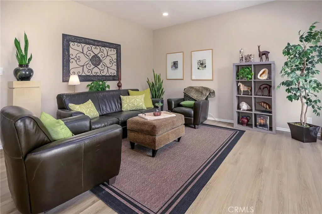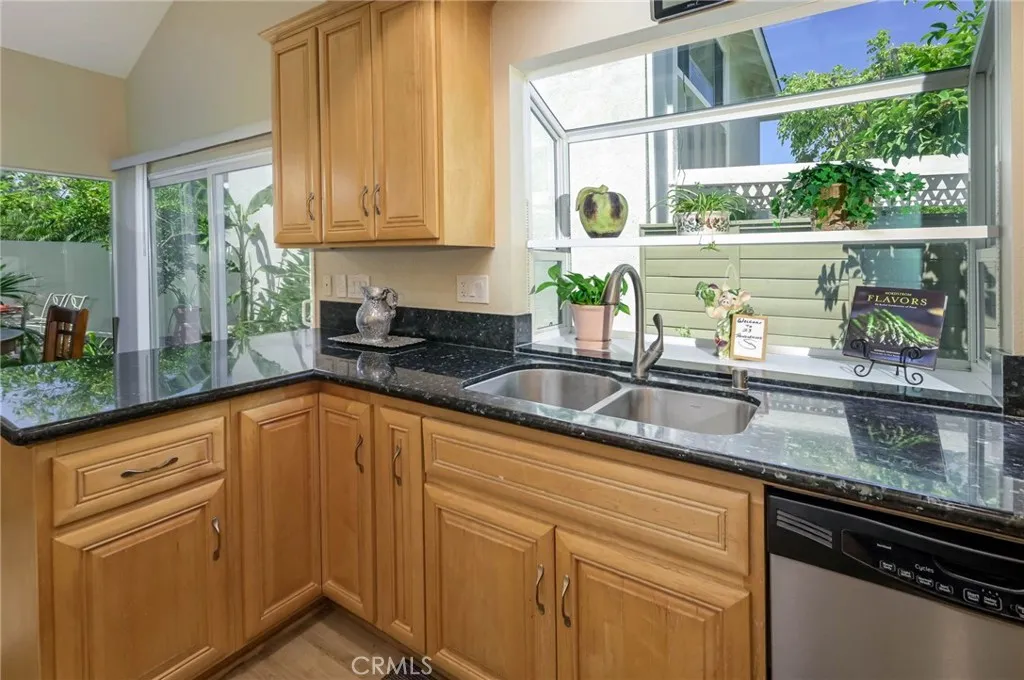 Charming single level home (no interior steps), remodeled kitchen with upgraded cabinets, granite counter tops, stainless steel appliances (refrigerator included) and sink, recessed lighting, and garden window. Wall between kitchen and dining area removed to open up the kitchen. Wood-like laminate & tile flooring throughout. Bathrooms recently remodeled with quartz countertops, new sinks, fixtures and lighting. Newer A/C unit and hot water heater. Interior doors recently upgraded from flat to recessed paneled. Decor outlets and rocker switches. Flush recessed lighting. Cathedral ceilings and lots of upgraded windows & sliders and mirrored wardrobes add to the spacious light and bright ambience. Cozy back yard with lush landscaping, citrus trees and large patio. Private front patio off master bedroom. Direct access to two car garage; washer & dryer plus 2nd fridge included. Original valuable hanging artwork is included in the sale. New roof in 2024. Excellent quiet location in the fabulous Village of Woodbridge. Only 100 yards from North Lake Swim Club. Woodbridge has been rated the Best Place in America to raise a Family by Parents Magazine and it's been named the #1 HOA in the Country. Living in the Village of Woodbridge is equivalent to residency in a high end resort with its unmatched amenities including 22 Pools, 23 Tennis Courts, 4 Pickleball Courts, bocce, basketball, sand volleyball, shuffleboard, numerous parks with play equipment, BBQs & picnic facilities, walking/biking paths, boating, fishing and 2 lakes with Beach Clubs & lagoons. Irvine has ranked as the Safest