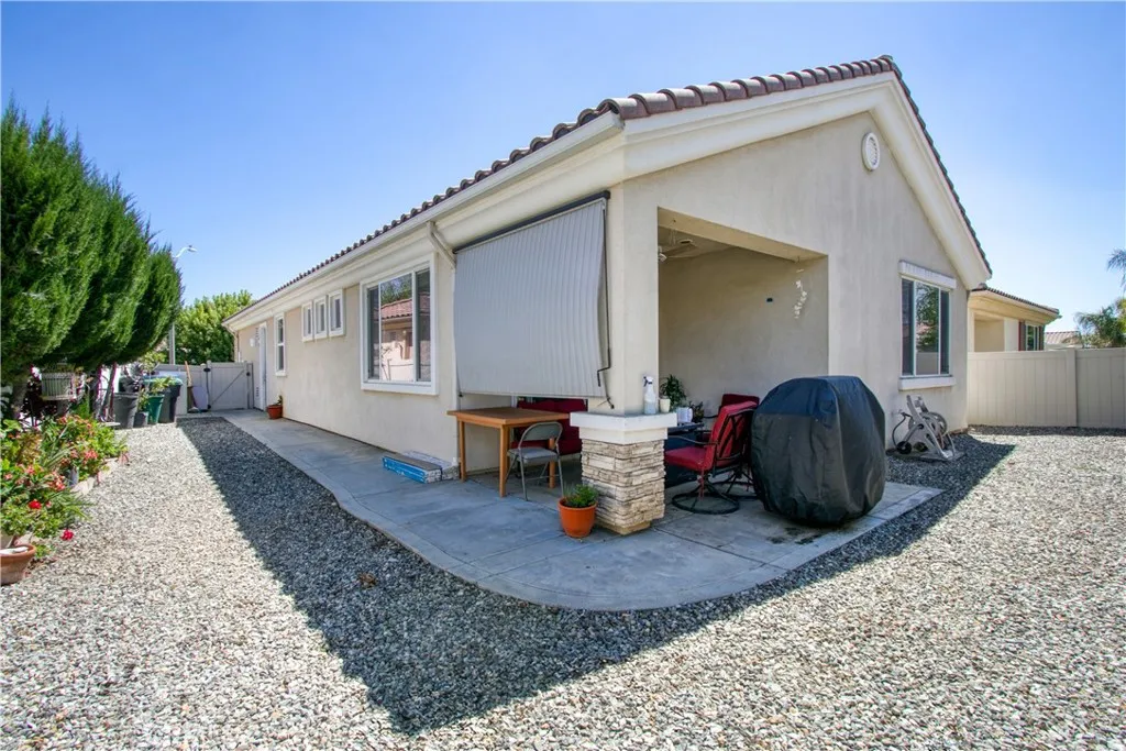 Discover refine living in this sophisticated one story residence in the highly desirable Solera Oak Valley Greens Community. A vibrant 55+ community. The sliding glass door leads to the covered patio and generously lot with several fruit trees that includes a peach tree, guava tree and plums tree, great space to entertain and BBQ. The kitchen opens in to the living space and adjacent is the inside laundry room. Besides the 2 bedrooms the floor plan comes with a den/office space that is perfect for hobby room or an extra room for company to stay. Two car garage and driveway. The club house has resort style amenities including a club house, pool, fitness center. library, billiard room, and pickleball courts. Conveniently located near freeway access, only minutes away to world-class attractions in the palm springs area, casino Morongo and famous Cabazon Outlet stores.