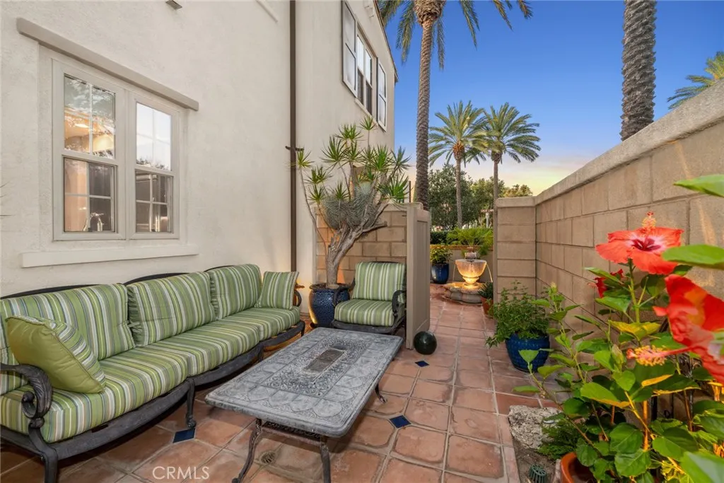 Welcome home to 64 Great Lawn which is a PERFECT 3 bedroom / 3 bath Treo Residence in the highly desirable Woodbury Village. This residence is over 2,000 sqft and has a ***Premium Corner Lot*** with extra space between neighbors, and a private side-yard. Nestled against the foothills of Irvine, you will find 64 Great Lawn a masterful home that is appointed with luxurious upgrades such as beautifully honed travertine tile flooring with custom focal point design at entry, accent hardwood stairs, and ultra-plush carpet in the living room and bedrooms for a lifestyle of comfort. Use the downstairs bedroom for guests or office/media room. Other upgrades include recessed lighting, exquisite ceiling fans, custom designer paint through out and California shutters and curtains accenting the windows in the living area and bedrooms. Prepare gourmet meals in the Chef inspired kitchen with granite counter tops and stainless steel appliances including ***Thermador built-in refrigerator*** and ***Bosch cooking range and dishwasher***. Venture outside through the French doors to a ***Private side-yard patio*** to sit and talk about the days of summer past and enjoy the strategically placed water fountains ***Promoting harmony*** through Feng Shui principles of plants, water, and light. Upstairs you will find a study loft for a home office and 2 spacious rooms with the Primary owner's bedroom offering an en-suite bathroom with separate soaking tub and the guest bedroom with it own en-suite bathroom for privacy. As a bonus, the Primary Owner's bedroom does not share any walls and is a standa