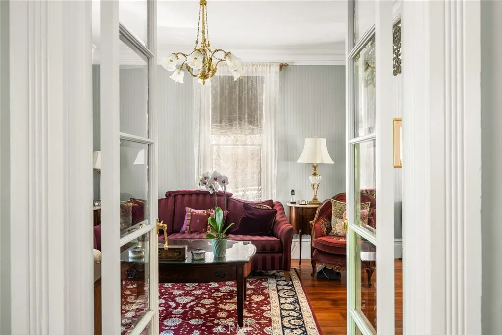 This HISTORIC 1888 VICTORIAN IN OLD TOWNE ORANGE will take your breath away! Believed to be the second oldest home in Orange, it has been METICULOUSLY and SENSITIVELY RESTORED, yet CONTAINS ALL OF THE MODERN CONVENIENCES! In addition to the 1558 sq. ft. in the main home, a SEPARATE GUEST HOUSE/HOME OFFICE/HOBBY ROOM/POSSIBLE ADU provides a 3RD BATHROOM and ADDITIONAL SQUARE FOOTAGE! Youll immediately be impressed by the INVITING FRONT PORCH and the numerous STAINED GLASS WINDOWS. 10 FOOT CEILINGS, PERIOD LIGHT FIXTURES and ORIGINAL DOUGLAS FIR FLOORING highlight most downstairs living areas. The attractive floor plan includes a FORMAL ENTRANCE FOYER, SEPARATE LIVING ROOM, WONDERFUL SEPARATE FORMAL DINING ROOM highlighted by a WOOD (or gas) BURNING FIREPLACE with CUSTOM MANTLE, a LARGE, COMPLETELY REMODELED KITCHEN thats a CHEFS DREAM, BREAKFAST AREA, DEN, SPACIOUS MASTER BATH with SEPARATE SHOWER, CLAW FOOT TUB and GORGEOOUS VANITY and INDOOR LAUNDRY ROOM! Theres a WALK-IN BASEMENT for extra storage. An OVERSIZED 1 CAR GARAGE has an EV charger and easy alley access. Set among the lush grounds are a CHARMING GAZEBO and fantastic POTTING SHED. NUMBEROUS FRUIT TREES include avocado, apple, orange, mandarin orange, lemon and lime. The home is also ON THE MILLS ACT, which should make property taxes for the proud new owner about $3000/year, providing huge savings! This home is only a 3 block walk to the HISTORIC PLAZA, with its many restaurants and amenities, including library, train station and the popular HILBERT MUSEUM!