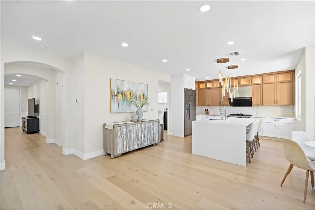 Commanding views, a prime corner lot, and timeless upgrades define this exceptional residence in Irvines highly coveted Quail Hill community. Feels like a model home. Completely renovated in 2024 and move-in ready, this 4-bedroom, 3.5-bathroom home spans approximately 2,655 square feet and sits on a spacious 5,541 square foot lot, offering privacy, sophistication, and an elevated lifestyle. From the moment you arrive, youre greeted by the striking curb appeal and panoramic city lights and mountain vistas. Step inside to discover a bright, open floor plan that blends modern elegance with everyday functionality. The main level showcases solid wood flooring throughout, custom wainscoting, high-end lighting fixtures, and beautifully coordinated finishes that evoke the feel of a model home. The spacious living and dining areas seamlessly connect to a thoughtfully designed chefs kitchen featuring premium cabinetry, and a large center island perfect for entertaining. Upstairs, the expansive primary suite offers a tranquil retreat with its own private balcony capturing stunning views to Orchard Hills, a custom walk-in closet with built-in organizers, dual vanities, an oversized walk-in shower, and a luxurious soaking tub. Three additional bedrooms and two baths provide versatility for family, guests, or home office needs. Enjoy the benefits of a corner lot oversized backyard with beautifully planted fruit trees, flowers, and extra space perfect for entertaining or hosting parties. Zoned for renowned University High School and located just steps from parks, and Alderwood Elementary,