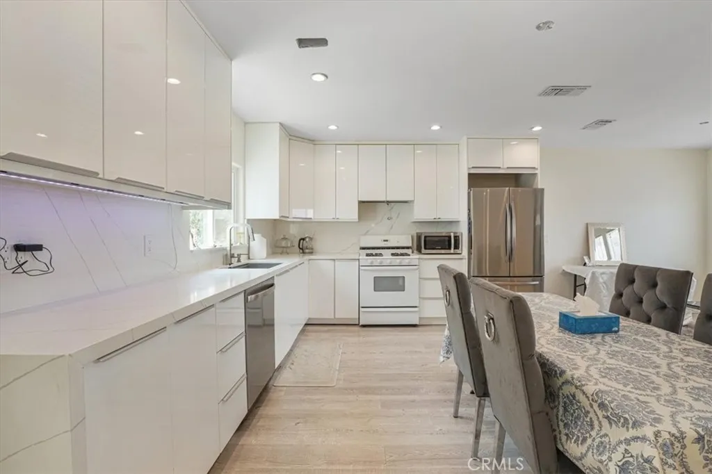 Welcome to your new home located in a highly sought area of Tarzana, CA. This beautifully updated home offers 3 bedrooms, 2 bathrooms, and 1,509 sq ft of living space on a spacious 6,206 sq ft lot. Inside, youll find laminate wood floors, recessed lighting, fresh paint, and an abundance of natural light throughout. The modern kitchen features brand-new cabinets, sleek countertops, and a functional layout perfect for entertaining. Both bathrooms have also been tastefully remodeled. The attached garage has been transformed into a versatile space with finished walls, an AC unit, and a layout that includes 2-car parking plus an additional area currently used as a home officeideal for remote work or creative space. Step outside to a large backyard with endless possibilities, plus a generous driveway offering possible RV access. Located in a quiet Tarzana neighborhood near shops, restaurants, and freeway access, this move-in ready home is a must-see!