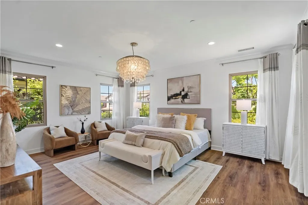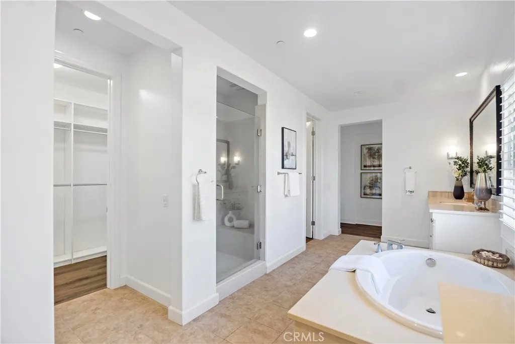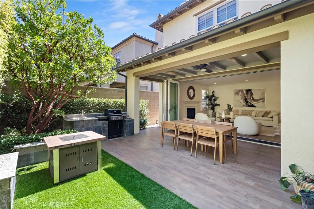 Beautifully upgraded home in a quiet interior location of the sought-after Stonegate community. Featuring 4 bedrooms, 4 full bathrooms, a spacious upstairs bonus room, and an attached 2-car garage, this home offers approximately 3,300 square feet of comfortable living space. One bedroom with full bath is conveniently located on the main level. Interior highlights include rich hardwood flooring, crown molding, plantation shutters, custom drapery, recessed lighting, and a cozy fireplace. The open-concept great room connects seamlessly to the California room through large bi-folding doors, creating the ideal indoor-outdoor living experience. The gourmet kitchen is equipped with quartz countertops, subway tile backsplash, upgraded white cabinetry, built-in KitchenAid stainless steel appliances, an oversized center island, a walk-in pantry, and a built-in home management nook. A water filtration system is also installed, providing clean & drinkable water. Upstairs, the spacious primary suite offers an oversized walk-in closet and a beautifully upgraded bath with soaking tub, walk-in shower, and dual vanities. All bedrooms feature their own full bathrooms. The upstairs laundry room includes ample cabinetry and a utility sink, and the large bonus room is perfect for a home office, media room, or playroom. The backyard is designed for entertaining, with a covered California room, built-in BBQ, porcelain tile patio, and mature landscaping for added privacy. Energy-efficient features include 20 fully paid-off solar panels, a water softener system, and a Tesla wall chargerall included
