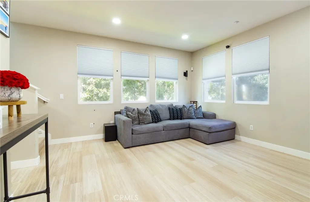 This stunning three-story home in Willow Walk Community offers a secure living environment with an inviting entryway leading to a spacious second floor featuring an open living room, half bath, dining room, and modern kitchen with granite countertops and wooden cabinetry. The home includes a serene patio with an anti-theft sliding door, while the third floor boast a master bedroom with an in-suite bathroom, an additional bedroom, and a full bathroom. Renovated with upgrades like new flooring, LED vanity mirrors, recessed lighting, custom windows screens in entry, and security features, it also includes an attached two-car garage and various negotiable amenities like a Tesla charger and water filtration system. Residents can enjoy a common dog park and playground, with 24/7 security access, making this home a perfect blend of comfort and safety.