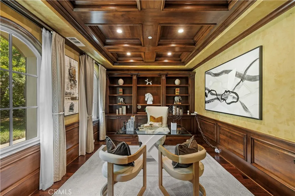 Completed in 2019, this magnificent residence is ideally situated on a serene, tree-lined street in one of Arcadia's most coveted locations. Boasting nearly 7,315 sqft of meticulously crafted living space on an expansive 15,000+ sqft lot, every detail of this custom estate exudes sophistication and comfort. Step through the grand double-door entrance into a breathtaking marble foyer with soaring ceilings, dazzling crystal chandeliers, and elegant domes, setting the tone for the opulence within. An exquisite, built-in library offers a quiet sanctuary, while the glamorous living room, complete with a designer fireplace, flows seamlessly into the formal dining room perfect for entertaining. The gourmet kitchen is a chef's dream, featuring gleaming granite countertops, top-of-the-line stainless steel appliances (including a built-in refrigerator), a generous center island, breakfast nook, custom cabinetry, a dedicated pantry, wet bar, and even a separate wok kitchen. This thoughtfully designed home offers 4 luxurious suite bedrooms and 1 guest room plus 2 additional baths, including a convenient main-level guest suite with a Jacuzzi bathtub and shower. The upper level features a spacious master suite, complete with double sinks, a soaking tub, and two massive walk-in closets. The expansive open basement is an entertainer's paradise, featuring a state-of-the-art home theater with reclining chairs, a built-in projector, and a sound system, a dedicated gym room, a sophisticated wine cellar, and another wet bar. Beyond the exquisite interiors, this estate offers practical luxuries