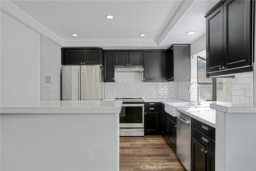 Tucked away in a prime Calabasas location, this updated tri-level townhome in Las Virgenes Village welcomes you! Looking for something light, bright, and inviting, this spacious home features three generously sized bedrooms and two-and-a-half bathrooms. The main level offers an open-concept living space with smooth ceilings, recessed lighting, laminate flooring throughout, and a cozy fireplace accented with great tile, making it a feature of the main floor but subtle, giving off a cozy vibe. The updated kitchen is a great space with Caesar stone countertops, a designer tile backsplash, stainless steel appliances, and a farmhouse sink and plenty of storage space and a good sized dining area, keeping the concept open and flowing nicely. Enjoy a quiet morning on your balcony just off the living room. Upstairs, all bedrooms are a good size with dual-pane windows and laminate flooring throughout, including a spacious primary suite with high ceilings and an en-suite bath. The additional full bathroom serves the secondary bedrooms, and theres a convenient half bath on the main level for guests. The attached two-car garage offers direct access for ease and privacy. The community itself has great amenities, including a sparkling pool, relaxing spa, clubhouse, and beautifully maintained greenbelts and some utilities such as water, cable TV, and basic internet services, all this and more located within the award-winning Las Virgenes School District, with hiking trails, shopping, and so close to our beautiful beaches. This is Calabasas living at its best.