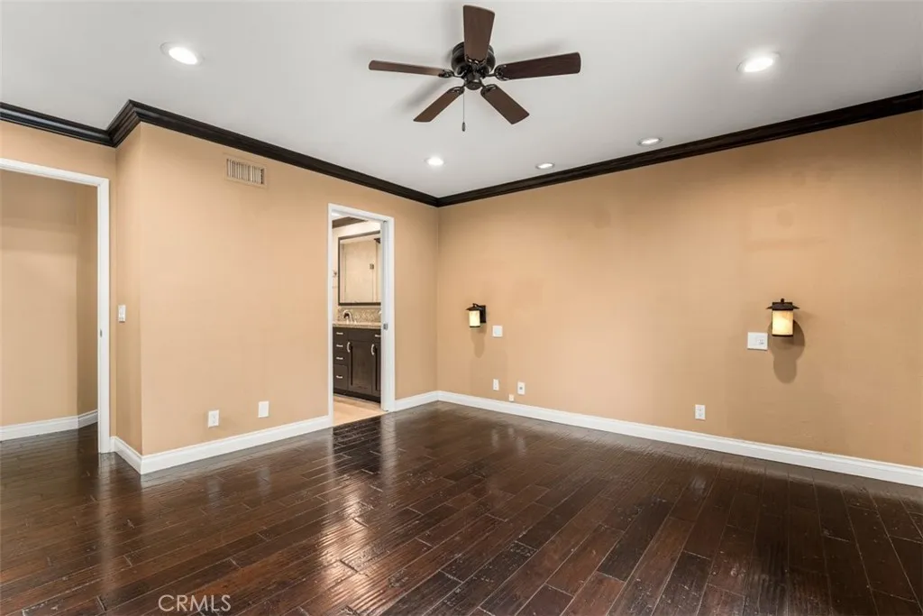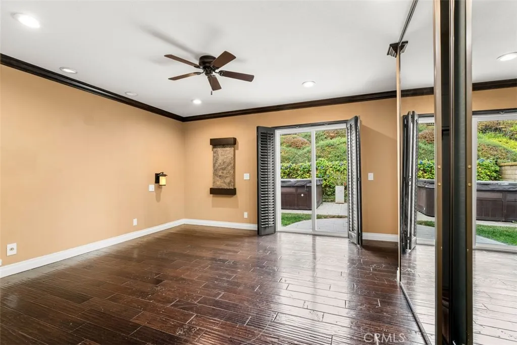 Welcome to 21955 Bacalara stunning single-level residence tucked away on a tranquil street in the highly sought-after Montiel neighborhood. Thoughtfully remodeled with custom design details, this home harmonizes timeless elegance with modern sophistication. Just moments from Crucero Park and the picturesque Lake Mission Viejo, and set within an award-winning school district, the location offers both convenience and lifestyle. Lake Mission Viejo membership is included, providing access to boating, fishing, swimming, year-round activities, and unforgettable summer concerts. From the moment you step inside, the craftsmanship is evident. Travertine floors enhance the foyer, kitchen, baths, and laundry, while Brazilian Cherry hardwood with a rich walnut finish flows through the hallways and primary suite. Dual-pane windows and sliders, custom interior doors, recessed and art lighting, and walnut crown molding elevate the homes custom-designed interior. The gourmet kitchen is a true showpiece, featuring bespoke cabinetry, Brazilian Golden Beaches granite countertops, premium stainless steel appliances, a wine refrigerator, and skylights that flood the space with natural light. Matching granite continues into the bathrooms, laundry, and even the custom mahogany fireplace mantel in the living room. Additional upgrades include a new electrical panel, a Culligan water softener system, and designer-selected finishes that showcase the homes thoughtful custom design. Step into the backyard and discover your private retreat. Lush landscaping backs to a serene greenbelt, while the extende