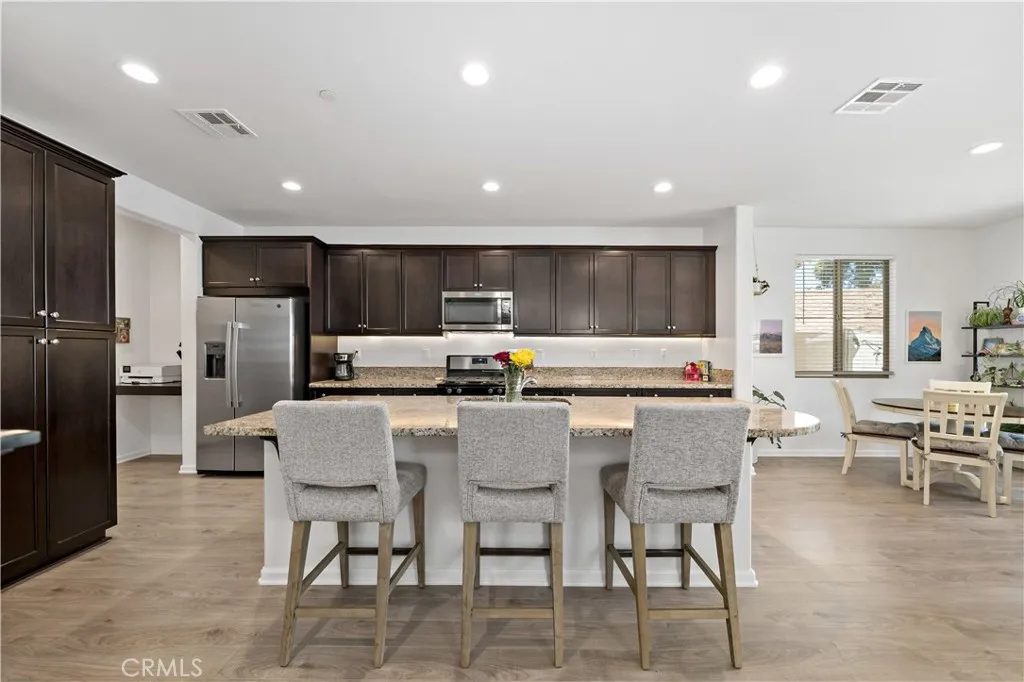 Located in Winchesters sought-after French Valley, this detached home in the gated Bella Sol community offers a peaceful retreat with all the perks of contemporary design and convenience. Built in 2018, the home boasts 1,775 square feet across two stories, featuring 3 spacious bedrooms, 2.5 baths, and a 2-car attached garageideal for growing families or those seeking a peaceful escape. Inside, you'll find a thoughtful layout with all bedrooms upstairs, a cozy mix of carpet, wood vinyl flooring, and modern amenities like a tankless water heater, central air, and an upstairs laundry. The heart of the home has a beautifully designed kitchen, featuring a center island, bar seating, and an eat-in dining area that flows seamlessly into the family roomperfect for casual meals, entertaining, or cozy nights in. With plenty of cabinet space, this kitchen is as functional as it is welcoming, offering room for everything from your favorite cookware to weekend farmers market finds. Outside, discover a cozy private patioperfect for morning coffee, weekend barbecues, or quiet evenings under the stars. Framed by durable vinyl fencing, its a low-maintenance space that feels both intimate and functional. The Bella Sol community offers resort-style amenities including a pool and spa, tot lot, well-lit sidewalks and streetlights that create a safe, walkable neighborhood. Located within the Temecula Valley School District, this home offers access to some of the regions most sought-after schoolsmaking it a smart choice for families prioritizing education. Just minutes away, you'll find convenien