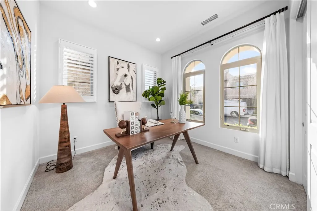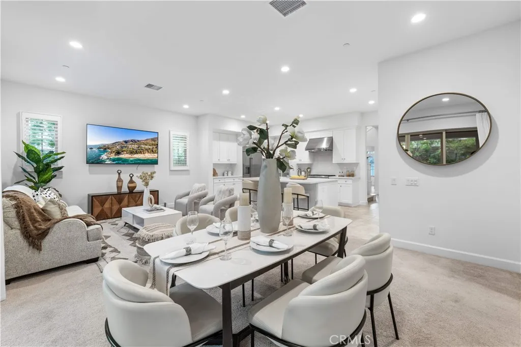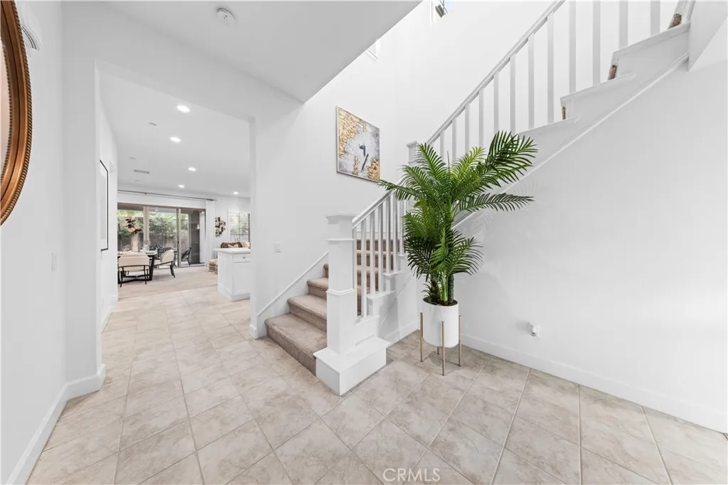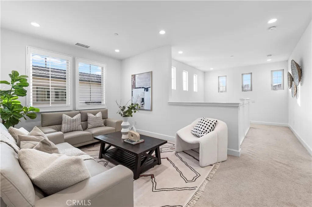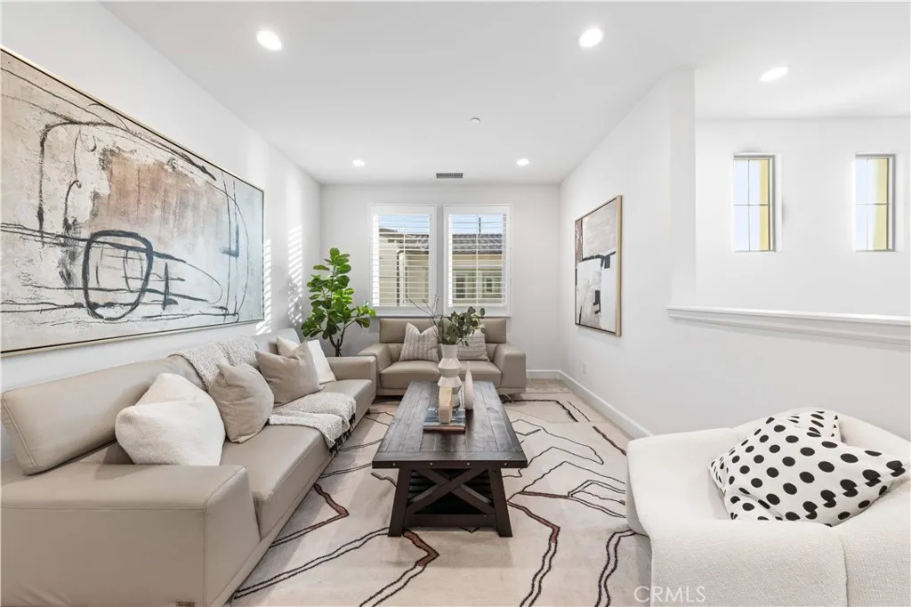 In the prestigious guard-gated community of Orchard Hills in Irvine, this elegant residence offers refined living with unmatched convenience and luxuries. Surrounded by acres of lush greenery, palm-lined views, and breathtaking mountain scenery, Orchard Hills provides a serene, family-friendly atmosphere alongside resort-style amenities, including a Junior Olympic pool, wading pool, spa, tennis and basketball courts, picnic areas, club room, and year-round community events. Top-rated schools, parks, and scenic trails further enhance the appeal of this highly coveted neighborhood. Inside, the home features thoughtful design and modern luxury. Beyond the welcoming foyer, a versatile flex space offers the perfect setting for a home office or guest room. The chef's kitchen boasts a timeless white palette, complete with stainless steel appliances, a chic backsplash, and a walk-in pantry. Expansive windows fill the open living and dining areas with natural light, while seamless access to the private yard makes entertaining effortless. White plantation shutters and recessed lighting accentuate the homes bright, sophisticated style. Upstairs, a cozy loft provides additional living space. The primary suite is a tranquil retreat with a walk-in closet and a spa-inspired bath featuring dual vanities, a soaking tub, and an oversized glass shower. Two secondary bedrooms share a connected bath with another soaking tub and separate shower, while an additional bedroom offers its own Juliet balcony. In total, the home includes three soaking tubs and thoughtfully designed secondary spacesincl