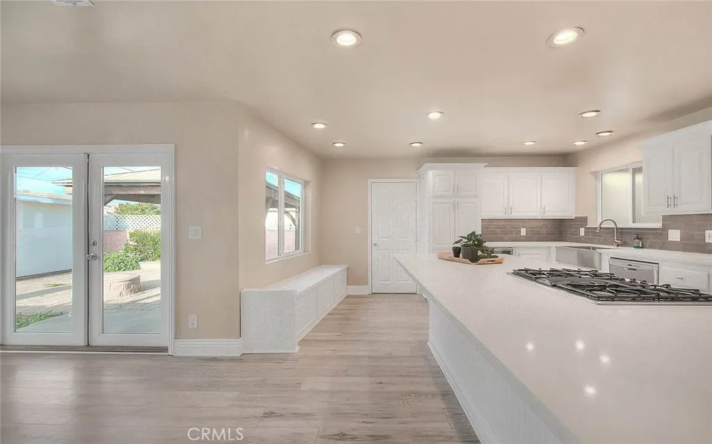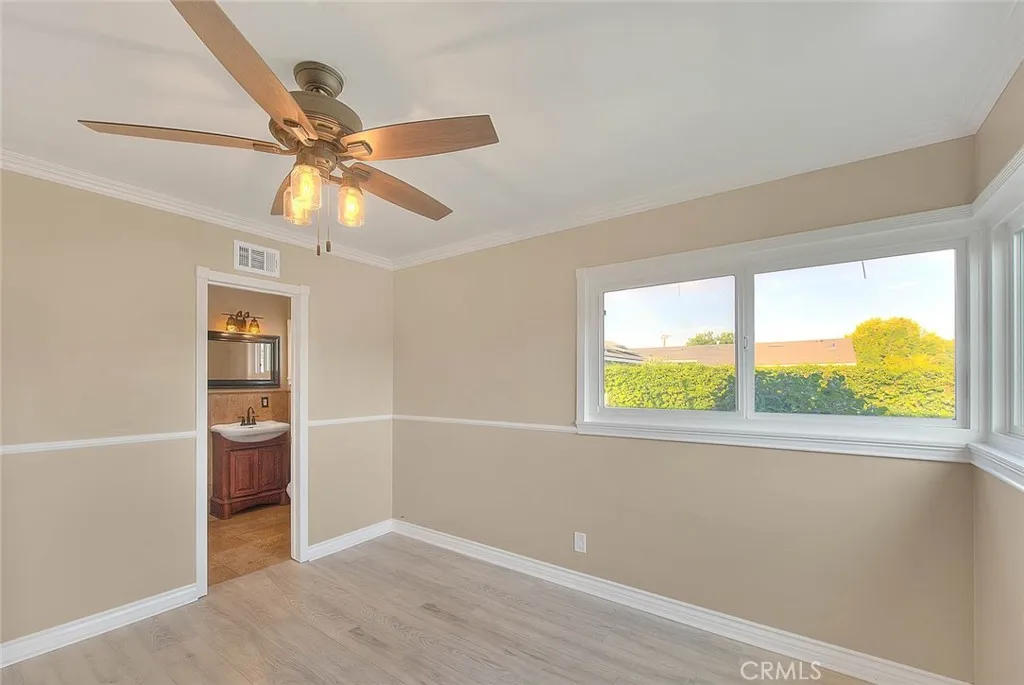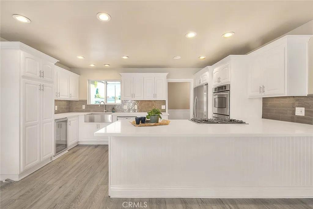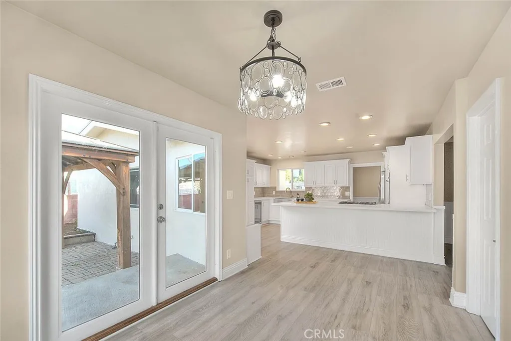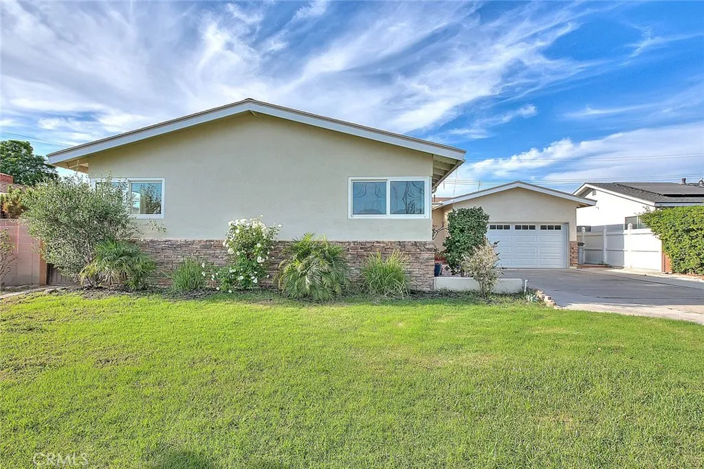 This beautifully upgraded 4-bedroom, 2-bath home with studio ADU offers timeless charm with modern touches throughout. Step inside to discover custom woodwork, wainscoting, and crown molding. The inviting living area features built-in bookcases and a stunning custom fireplace with a herringbone hearth, creating a warm focal point for gatherings. The kitchen is beautifully appointed with quartz countertops, huge peninsula/breakfast bar with room for 6 barstools, custom cabinetry, a double convection oven, a large farm sink, built-in wine cooler, and storage designed for oversized pots. French doors from the dining room open seamlessly to the backyard, blending indoor and outdoor living for effortless entertaining. The primary bedroom features an ensuite bathroom with a pedestal sink and stone-tiled shower. The homes hall bathroom has been recently remodeled, offering fresh finishes and modern style, while the spacious secondary bedrooms provide comfort and functionality. Outdoors, enjoy a covered patio with a gazebo, fire pit, and attractive stonework. The property also includes a large storage shed and an attached studio ADU, ideal for extended family, guests, or rental income. Additional highlights include double-pane windows, a window bench, tall baseboards, and a two-car attached garage with direct entry, extra long driveway (RV parking potential), heating/vent system updated within the last 5 years. Conveniently located in the desirable Loara High School area, and close to shopping, schools, and freeway access, this home offers both style and practicality.