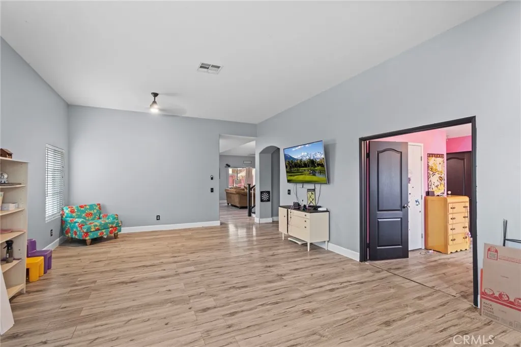 Another great opportunity in the beautiful city of Hemet, where space, style, and comfort collide in perfect harmony! Sitting proudly on a desirable corner lot, this freshly updated home offers 2,663 sqft of beautifully designed living space on a generous 7,405 sqft lot. From the moment you walk through the front door, youll fall in love with the expansive living room, seamlessly flowing into the open-concept kitchen and a family room complete with a charming gas fireplace, the perfect setting for entertaining or relaxing nights. The kitchen is a true standout, featuring white wood cabinets, abundant storage space, and a functional layout that makes meal prep a breeze while keeping the heart of the home stylish and welcoming. Downstairs, youll find a primary suite with a massive walk-in closet and a spa-inspired ensuite bathroom, and an additional bedroom and bathroom. Upstairs adds even more flexibility with two additional bedrooms and another full bath, ideal for a growing household, multi-gen living, or a private home office setup. The entire home features brand new flooring throughout, and its all freshly painted, giving you a truly move-in-ready experience. Stay cool year-round with a brand new AC unit, offering a modern comfort upgrade already in place! Outside, enjoy the perks of a corner lot with added privacy, extra outdoor space, and excellent curb appeal. Whether you're hosting a summer BBQ or planning your dream backyard retreat, this property has the space to make it happen. Location, layout, and style, this one checks all the boxes. Dont miss your chance to ow