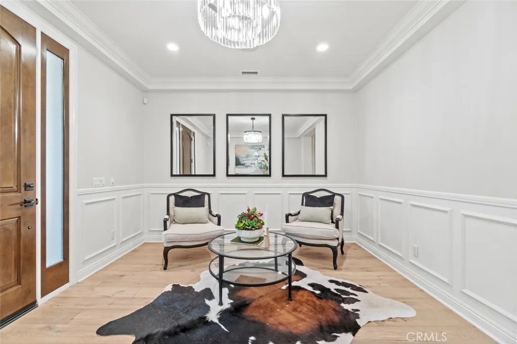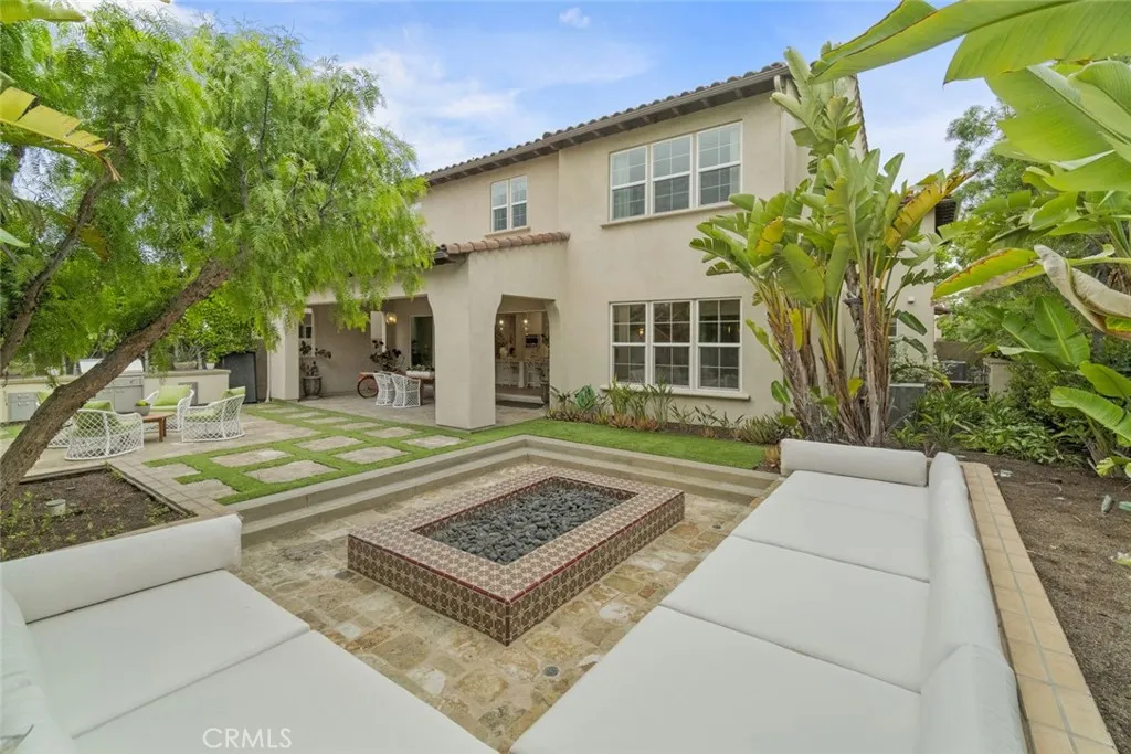 A stunning former model home located in the prestigious Great Park community. This beautifully designed residence features high-end upgrades throughout, including custom lighting, window treatments, wall paneling, wainscoting, and a state-of-the-art alarm and speaker system. The homes interior exudes elegance with custom paint and thoughtful electrical enhancements. The main floor offers a junior master bedroom with a full bath, perfect for guests or multi-generational living. The gourmet kitchen is equipped with top-of-the-line Thermador stainless steel appliances, upgraded granite countertops, a custom backsplash, and white raised panel cabinets. Luxurious finishes continue in the primary suite, featuring marble slab upgrades in the master bath. The flooring throughout the home includes a blend of stone, wood, and carpet in designated areas, adding warmth and style. Step outside to the professionally landscaped front and back yards, where you'll find an outdoor BBQ, fire pit, and a tranquil courtyard fountain perfect for entertaining or relaxing. As a resident of the Great Park community, enjoy access to premier amenities, including the five-acre Great Lawn, a resort-style pool and spa, sports courts, an outdoor kitchen, and recreational trails. The location offers convenience with direct access to Great Park facilities and inclusion in the highly acclaimed Irvine Unified School District, featuring the future Beacon Park K-8 School and Portola High School. This exceptional home blends luxury, comfort, and convenience in one of Irvines most sought-after neighborhoods. Don
