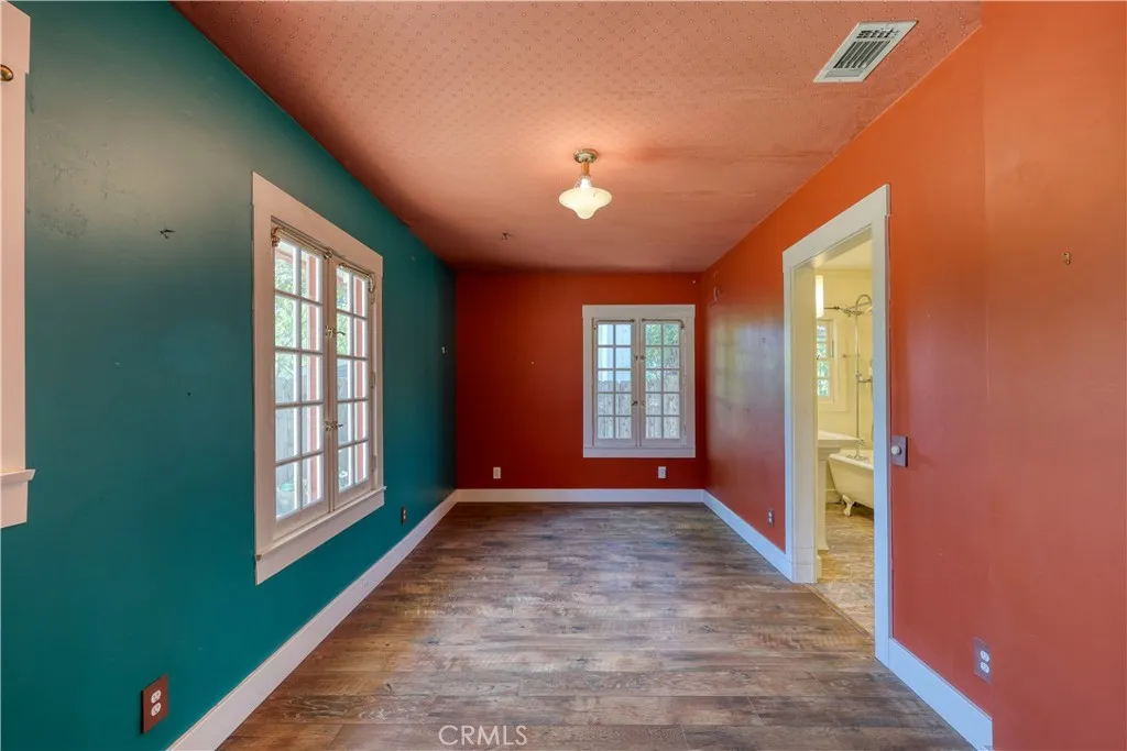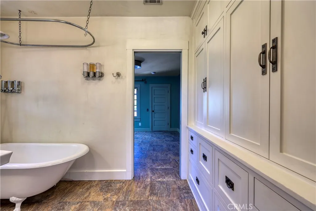 Charming 2-bedroom, 1.5-bath Colony Home featuring 1123 sq ft and built in 1925. A beautiful oak door with leaded glass opens to the living room updated with vinyl plank flooring and a cozy fireplace, flowing into a dining area with chandelier, built-in buffet, and a stylish half bath. The kitchen features newer cabinetry and counters, a farmhouse sink, double oven, and microwave. Both generous bedrooms include walk-in closets and share a bath with a classic clawfoot tub and a wall of self-closing cabinets and drawers. The laundry room offers pantry space and leads to a spacious backyard, ideal for gardening, entertaining, or relaxing. Enjoy morning coffee on the front deck, and make use of the side yard with a decorative gate for more garden potential. Leased solar system provides energy savings and efficiency. All with a country feel just minutes to downtown Atascaderos restaurants, shopping, and Sunken Gardens events.