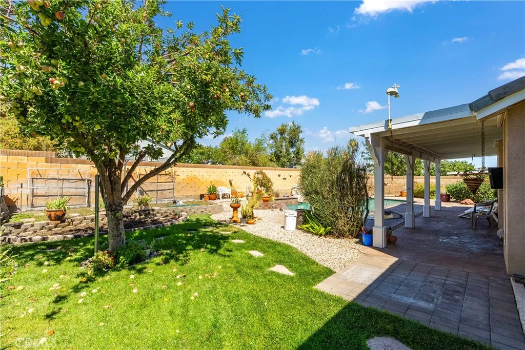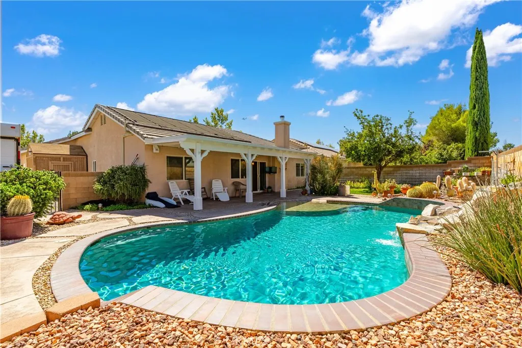 Welcome to this stunning 3-bedroom, with inground pool, home that combines comfort, privacy, and resort-style living. From the moment you arrive, you'll notice the impeccable curb appeal. A charming covered front porch invites you inside, while a 3-car garage and paved RV parking add both functionality and convenience. Inside, soaring vaulted ceilings enhance the open layout, creating an airy, welcoming feel. The kitchen overlooks the living room and dining area, making it the perfect gathering space for entertaining or enjoying everyday moments. Designed with a thoughtful split floor plan, the spacious primary suite is tucked away on one side of the home, offering peace and seclusion. The suite features a generous walk-in closet and a luxurious en-suite bathroom complete with dual sinks, an expansive vanity, a relaxing soaking tub, and a separate walk-in shower. On the opposite side, two additional bedrooms provide the ideal setup for family, guests, or a home office. The backyard is nothing short of a private oasis. Imagine warm summer days by the sparkling in-ground pool with pebble tech beach entry, complete with a cascading rock waterfall for a true resort feel. Custom stamped concrete pads provide easy poolside access, while a covered patio offers shade for outdoor dining or relaxing. A touch of greenery, including a fruit tree, brings life and charm to the spacebalancing beauty with function. This home offers it all: style, thoughtful design, and an outdoor retreat you'll never want to leave. Don't miss your chance to make it yours!