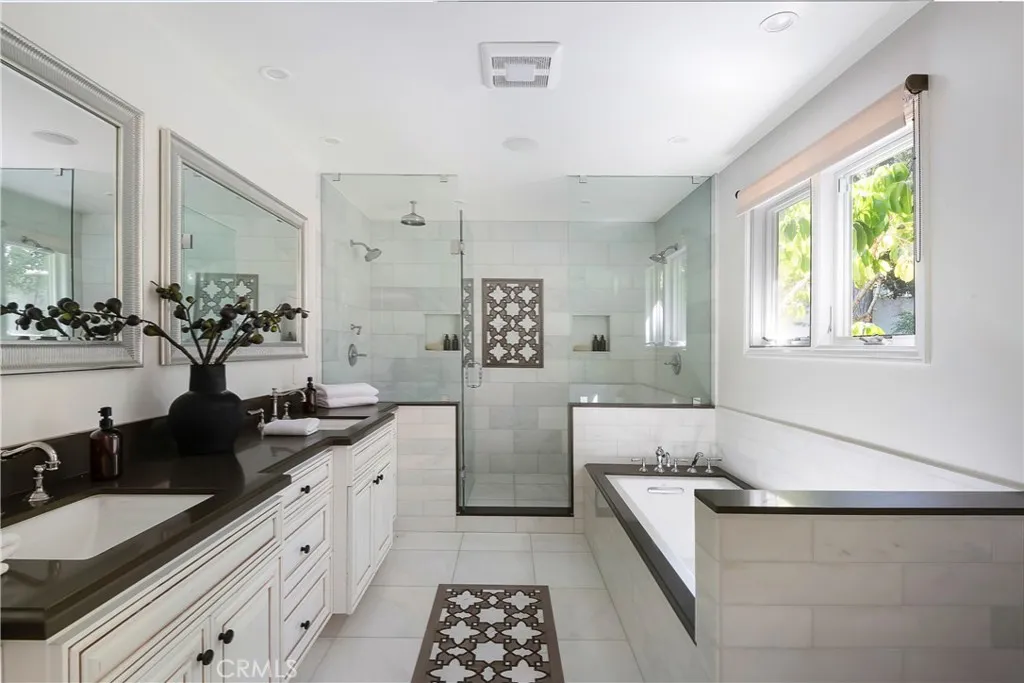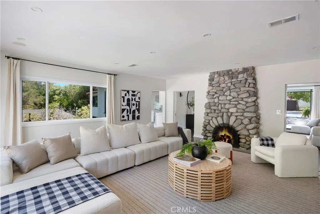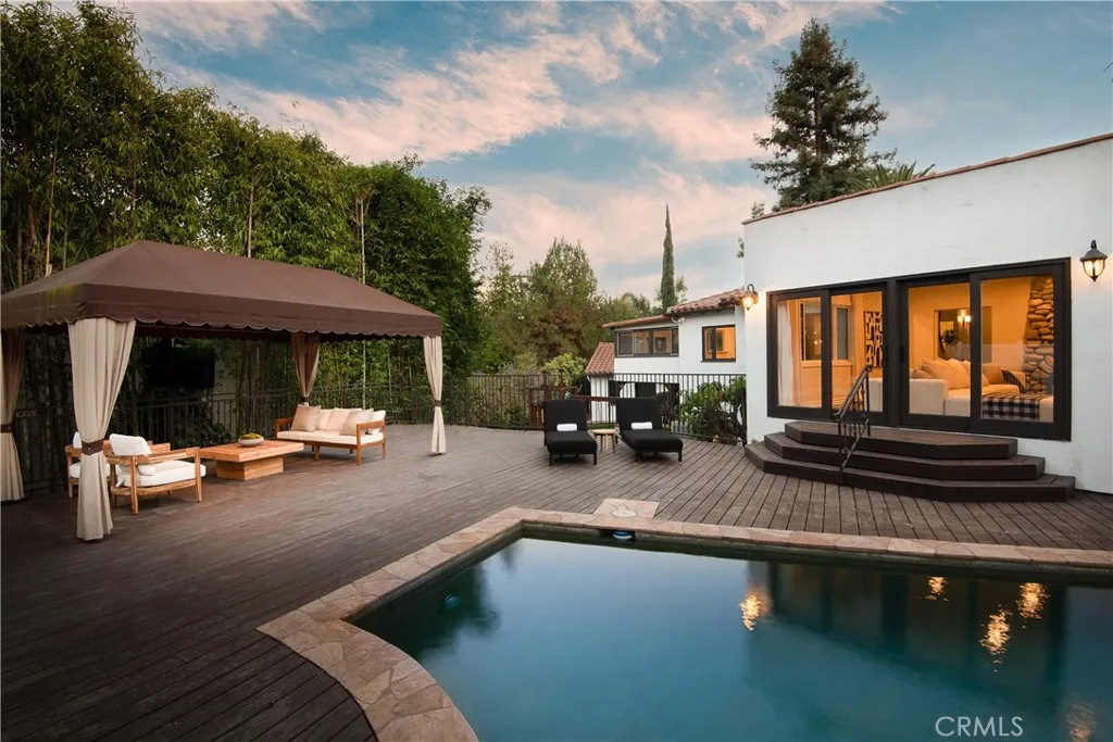 Nestled on an expansive corner lot, this refined 1923 Spanish-style compound is located South of the Boulevard in the highly sought after Encino Hills neighborhood. Situated on a private, completely enclosed, flat, and expansive over 18,000 square foot lot, this captivating single story residence offers a perfect blend of modern amenities and detailed craftsmanship. Featuring over 3,600 square feet of living space, 5 bedrooms and 4 bathrooms. The property makes a striking first impression with its dual- gated entry motor court sprawling front yard, lush, mature landscaping, and resort-like grounds. Inside, timeless architectural charm meets contemporary updatesfeaturing high, beamed ceilings, wide-plank hardwood floors, and large windows that flood the space with natural light. The formal living room opens to a spacious family room with a custom stone fireplace and flows effortlessly out to the expansive deck, pool, and spa. The chefs kitchen is outfitted with imported custom cabinetry, quartz countertops, high-end appliances including a wine cooler, skylight, and a convenient pass-through to the dining room. A versatile sunroom offers additional space for lounging, working, or entertaining. The luxurious primary suite is a true retreat with a cozy bay window seat, private sitting area, custom walk-in closet, and French doors opening to the front patio area. The en-suite bathroom features dual vanities and beautifully crafted tilework. Three additional bedrooms and updated bathrooms are equally spacious and thoughtfully appointed. The backyard includes a large wooden deck p