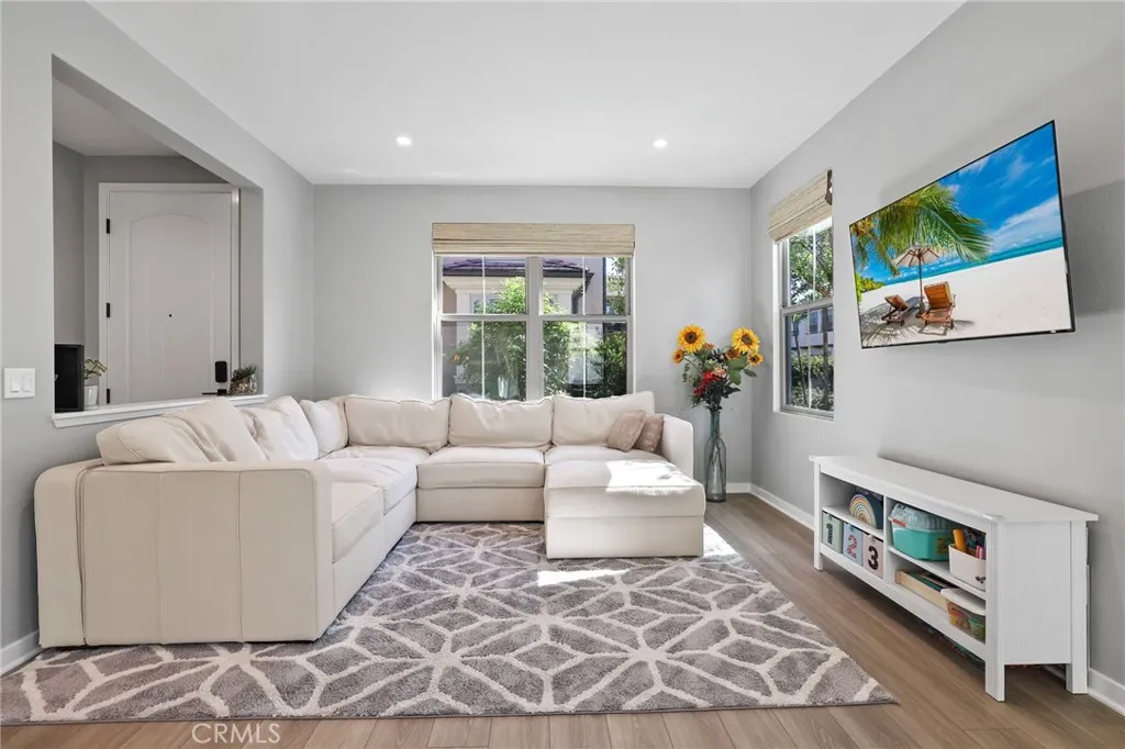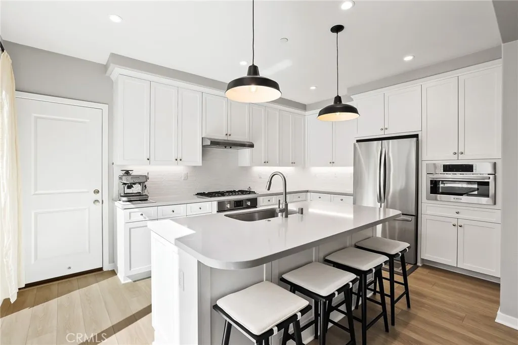 Experience Lapis at Portola Springs in this beautiful upgraded END-UNIT home. Built in 2022, this modern residence offers 3 bedrooms, each with their own ensuite bathroom, loft bonus room plus additional powder room downstairs. Spacious home with over 2100 sq. ft. includes a perfect loft area for added flexibility in living. Open concept design fills this home with an abundance of natural light. Gourmet kitchen with stainless steel appliances, including 5 burner cook-top, gorgeous quartz countertop and upgraded designer full backsplash. View private park-like patio through expansive sliding glass doors for seamless living and entertaining that inspires gatherings and outdoor relaxation. Upstairs primary suite offers a large walk in closet, freestanding soaking tub, dual vanities, and glass enclosed shower. Dedicated laundry room with extra storage space is located conveniently upstairs. Some added features throughout; motorized remote blinds, luxury laminate wood, designer selected plush carpet, car charger, epoxy garage floors and eco-friendly fully paid off solar panels just to name a few. This is a home that offers a lifetime of comfort and enjoyment for both daily living and for home ownership. As part of Portola Springs, residents enjoy resort-style amenities including pools, parks, playgrounds, basketball and tennis courts, scenic walking trails, and more. The community is also served by award-winning Irvine schools, with easy access to shopping, dining, and major freeways. Whether enjoying the beach or the mountains, this home is located centrally to enhance your lif