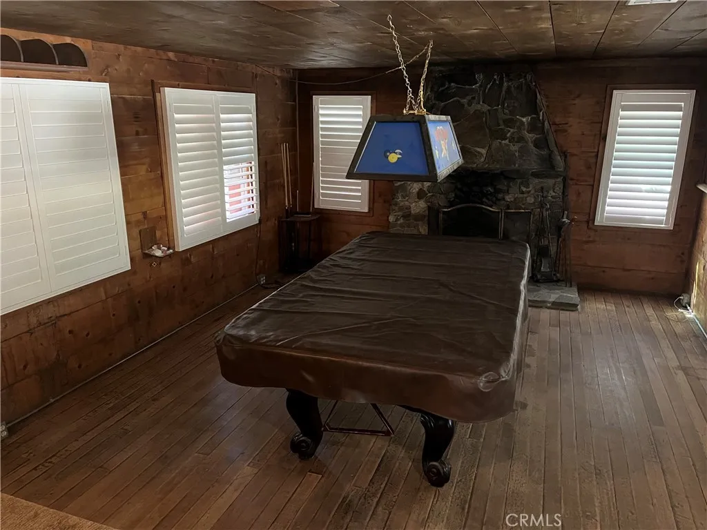 One of Wrightwood's old beauties. This one sits on a double lot with a circular drive. Garage is in the basement level. This one was modified to be handicap accessible with a main bedroom downstairs. Kitchen is open concept with a dual oven. Living room is designed to be an in-house theatre. There is also a game room with a pool table. Upstairs are three bedrooms. According to the owner, the house was upgraded ten years ago. Included in that were the new living room, a whole house forced air system. All the windows have been upgraded to new dual pane and shutters. There is also a water softener system and demand water heater.