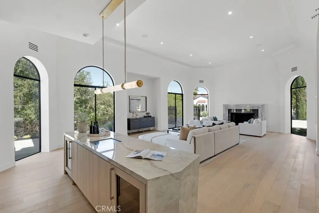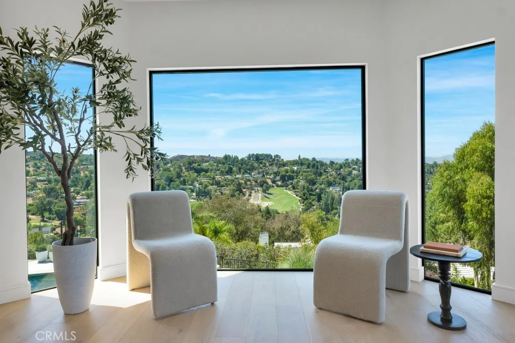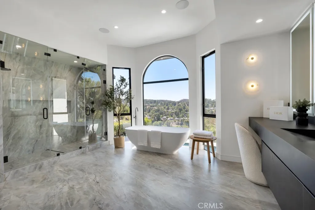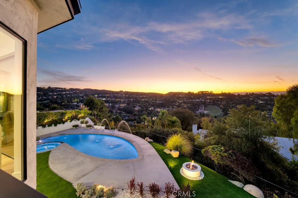 Welcome to 4015 Clarinda Drive, a newly remodeled contemporary estate in one of Tarzana Hills most coveted neighborhoods, offering 5,100 sq ft of elite luxurious living on an expansive 18,819 sq ft lot with breathtaking panoramic views from virtually everywhere on the property. Seller recently invested over $1,000,000 to remodel the entire home with custom high end expensive finishes throughout. The oversized open floor plan showcases soaring ceilings, Restoration Hardware chandeliers and light fixtures, LED mirrors, new doors and windows, custom cabinetry, wide-plank hardwood flooring, and so much more. A designer's dream of a gourmet chefs kitchen features true seductive warm flow, a large stone island, brand new Thermador appliances, sensational views, and an abundance of space to entertain. The massive living room has a romantic oversized fireplace, sleek wet bar, exit doors to the yard, and crisp lines. The primary suite is a gorgeous private retreat complete with a modern fireplace, custom walk-in closets with LED lighting, and a spa-inspired ensuite bathroom with dual vanities, an oversized glass shower, and a freestanding soaking tub framed by floor-to-ceiling windows capturing stunning valley views and cascading illuminating natural light. The additional bedrooms are generously sized, each boasting their own designer bathrooms with modern stonework and fixtures. For added convenience, the home includes two laundry rooms, and plentiful storage space. The backyard is designed for upscale resort-style living, with a brand-new pool and spa, built-in BBQ, fire pit loung