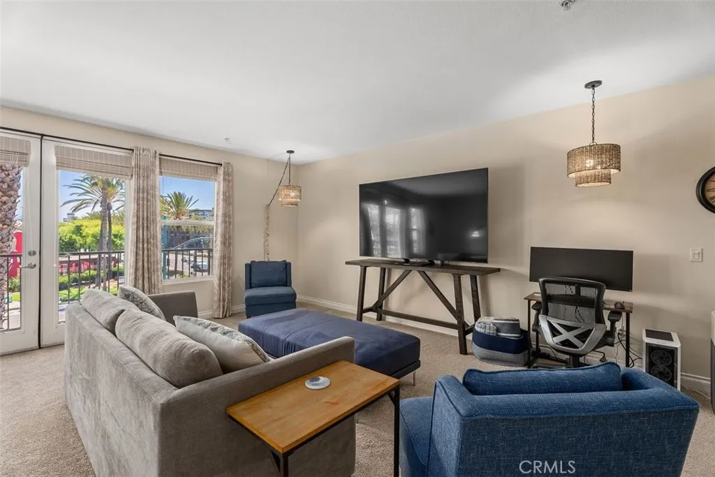 Experience elevated resort style living at the highly coveted Stadium Lofts! This beautifully upgraded, move-in ready studio condo offers 784 square feet on the 3rd floor with the rare bonus of TWO reserved parking spaces in a secured garage. Located in Anaheims prestigious Platinum Triangle, the open concept layout invites customization to suit your lifestyle. Large windows and floor-to-ceiling French doors bathe the home in natural light, complemented by custom window treatments and a private balcony perfect for fresh air and gentle breeze. Step inside to brand-NEW plush carpet (installed Aug 2025)and a modern kitchen boasting stainless steel appliances, including a newer dishwasher (2024), elegant granite countertops, and ample cabinetry. The stylish bathroom was refreshed in 2022 with updated vanity, mirror, lighting, exhaust fan, and medicine cabinet, complemented by a full bathtub with shower. Enjoy the convenience of a dedicated laundry closet with side-by-side washer and dryer, plus a spacious walk-in closet for optimal organization. Central AC & a Nest thermostat (installed 2020) ensures comfort year-round. Stadium Lofts offers resort-style amenities: pool, spa, sauna, fitness center, clubhouse with kitchen, game room, business center, outdoor fireplace lounge, secure bike parking, ample guest parking, and 24-hour gated security. Building Elevators and HOA covers trash, sewer, and high-speed WiFi for ease & convenience. Perfectly situated near Angel Stadium, Honda Center, City National Grove, Disneyland, UCI Medical Center, The Outlets at Orange, and Anaheim Metrol