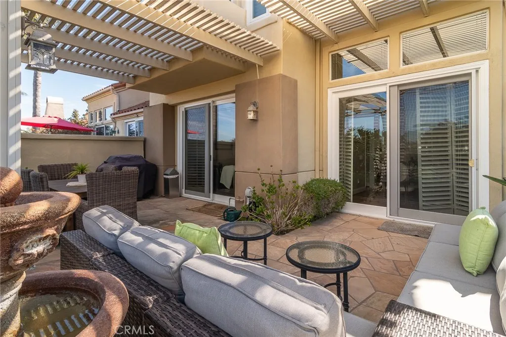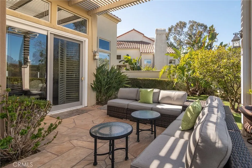 You won't want to miss this beautifully upgraded executive home with gorgeous views! Located in the gated community of Siena, no expense was spared and attention to detail is obvious throughout this beauty. Rich hardwood floors and fossil stone flow throughout most of the living areas. The kitchen features gorgeous custom designer cabinetry, granite counters, and top-of-the-line appliances. A breakfast nook looks out to a private courtyard with fountain. Huge windows and cathedral ceilings flood the home in natural light. The large primary suite features a fireplace and French slider that leads out to a balcony. The primary bath offers a jetted spa tub, beautiful marble shower and double sink vanity. Two additional spacious bedrooms share a jack-n-jill bath, also remodeled. Other features include plantation shutters throughout, ceiling fans in all rooms and updated fixtures throughout. A spacious backyard is a tropical garden with mature but well manicured foliage (including a productive Meyer lemon tree), artificial turf and stone patio, a bubbling fountain and panoramic views of the surrounding hills. Enjoy numerous amenities including the Siena pool and spa as well as the Marina Hills recreation center with pool, tennis, pickle ball, bocce ball, clubhouse and play area.
