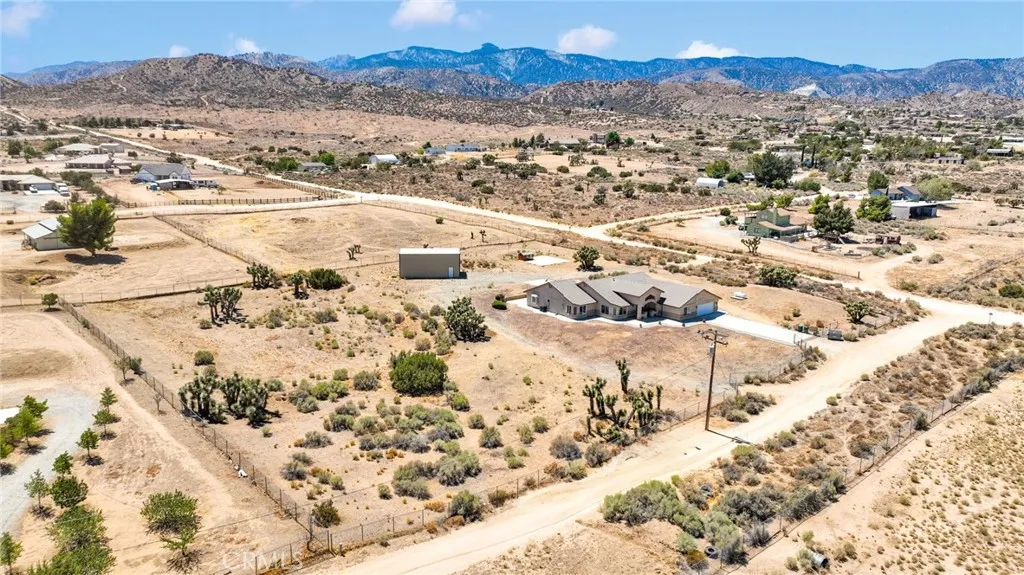 Beautiful Open Concept Home with 20 x 40 HUGE RV height Metal Shop! This home is gorgeous. Big open Living, Dining , Kitchen and Bonus Room. Pellet stove to keep those winter nights cozy. Owner's suite with Huge master bathroom with soaking tub. Amazing walk in closet, double sinks, separate walk-in shower, and private water closet. Second bonus room can be used as a 4th bedroom or office. Huge Laundry Room and Walk-in Kitchen Pantry. Unique pot shelves and ceiling above Kitchen. Enjoy the majestic views of the San Gabriel Mountains and the High Desert Valley on your Huge back patio, which is partially covered and leads to a wraparound sidewalk. Fully fenced Dog yard. 2 Chicken coops all on 2.4 acres which is fully fenced. This is a certified Wildfire Prepared Home.