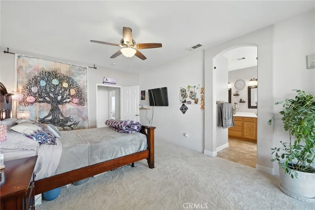 With the recent drop in interest rates, this may be the perfect time for a buyer to score the lowest price house in this beautifully established neighborhood! With no HOA, and low Taxes...this is worth your time to see! This 3 bd/2 ba (plus a 4th office, den, or 4th bedroom) residence offers an open-concept floor plan that seamlessly connects the spacious kitchen, dining, and family room areasperfect for entertaining or relaxing with loved ones. The kitchen features a walk-in pantry and overlooks the cozy family room, making it the heart of the home. Step inside through the main entrance and you'll find a versatile office space with a stylish barn door, ideal for remote work. Most rooms are adorned with newer blinds, and the flooring throughout is durable laminate vinyl plank, while the bedrooms feature newer carpeting for added comfort. The primary suite is a true sanctuary, boasting a renovated bathroom and a large walk-in closet with custom shelving. Every bedroom is equipped with ceiling fans for year-round comfort, and as a bonus, all mounted TVs and their hardware are included in the sale. Enjoy easy indoor-outdoor living with sliding doors from the dining area as well as the master, that lead to two covered patios, shaded by Alumawood structuresideal for weekend gatherings or quiet evenings. The backyard is a serene retreat, complete with a charming pink lemon tree. Additional upgrades include a brand-new water heater (just 3 months old), ensuring peace of mind and energy efficiency. Lovely clean neighborhood walking distance to schools, close to shopping and growing