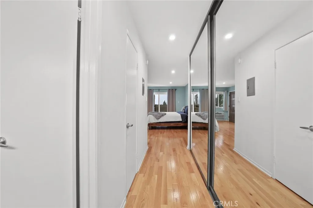 Beautiful tri-level townhome in perfect Brentwood location. One large bedroom suite and a loft. Nestled in a quiet boutique building of only 7 units, this home is close to everything walkable you love about Brentwood. Enter into a light and bright living room with high wood beam ceilings, and an open floor plan to dining and remodeled kitchen. Hardwood floors throughout, new appliances included with the home, quartz countertops, and a fireplace complete the main living level. Two private balconies, one off living room and second off the main bedroom. Main level bathroom was remodeled in 2020 and leads to the Loft which is the second bedroom or could also be used for office, exercise area, or zen retreat. The lowest level contains the extra-large main bedroom with separate entry (GROUND FLOOR ENTRY), balcony, a beautiful bathroom, 2 large closets, and full-size washer and dryer, which are also included with the home. Gated two car parking in shared garage, low HOA dues, multiple large extra storage spaces, with close proximity to shops, restaurants and 405 freeway.