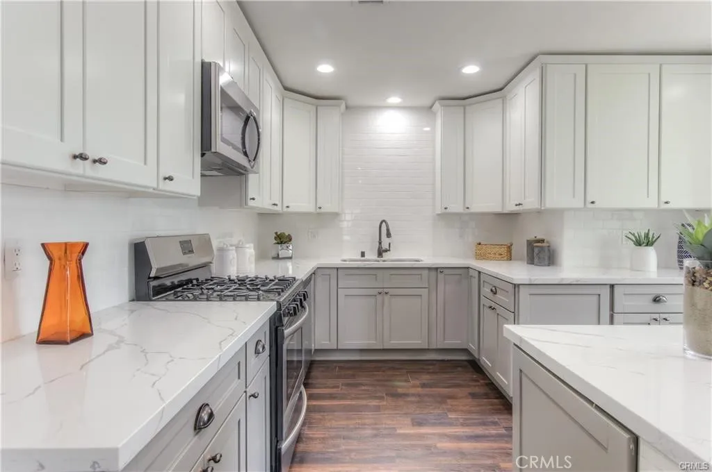 Welcome to this large 1,566 square foot well-kept house is located on a huge 6,744 square foot lot with a secure block wall fence on a tree-lined street! Features include 3 bedrooms + bonus room, 2 baths, doors for maximum sound proofing, remodeled bathrooms, remodeled kitchen with stainless steel appliances and quartz counters, formal dining room, bright and spacious living room with fireplace, master suite with large sliding glass door with view of yard, pool and trees and en suite bathroom with spa tub and quartz counters, bricks entryway, laminate flooring, dual pane windows, and more. The backyard has a cement flooring, covered patio and great space to relax with family or invite friends for a BBQ and enjoy the splashing pool especially this summer. This home has a lot to offer.