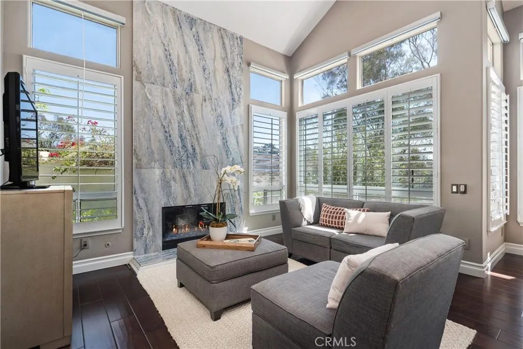 Live the good life in the coveted gated community of Siena and fall in love with this opened concept home that exceeds expectations! Upgraded THREE BEDROOMS (one downstairs with full bathroom) plus LOFT is ideally located in the community on a CORNER LOCATION and has exquisite finishes of hardwood and porcelain tiled floors, Carrara marble, and impressive windows that face a stunning view of hills, nature and gives you exceptional privacy! Right when you walk in through double glass doors, you are swept away by the soaring ceilings, gorgeous tiled to the ceiling fireplace and ceiling height windows! The kitchen is impressive and is open to living an indoor-outdoor lifestyle that is spacious, with a gorgeous Carrara marble countertop and backsplash, plus modern GE Monogram Stainless Steel appliances to include dual ovens, dishwasher, wine refrigerator, and a 5-gas burner stove! Primary bedroom has vaulted ceilings and dual doors that draw you to the deck that is perfect for coffee and views in the morning! Spa like bathroom has an extra-large shower in Carrara marble, stunning subway tile on the surrounding walls, and a stand-alone soaking tub plus shaker dual sink vanity with Carrara marble countertops! Upstairs the third spacious bedroom is en-suite with its own bathroom with marble showered/tub details and countertop! Garden oasis beckons enjoyment with a large patio under a pergola and grassy area that wraps around the corner of the home capturing hillside and nature views! Other noteworthy upgrades are newer Lenox AC, shutters, water softener and more. Gated Siena sits