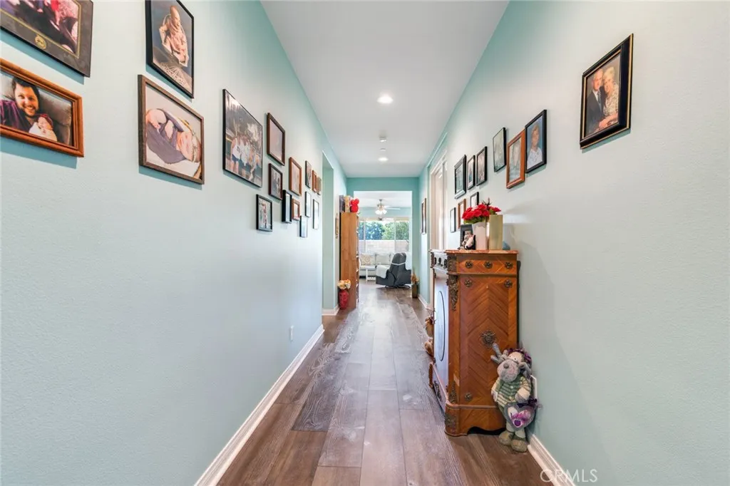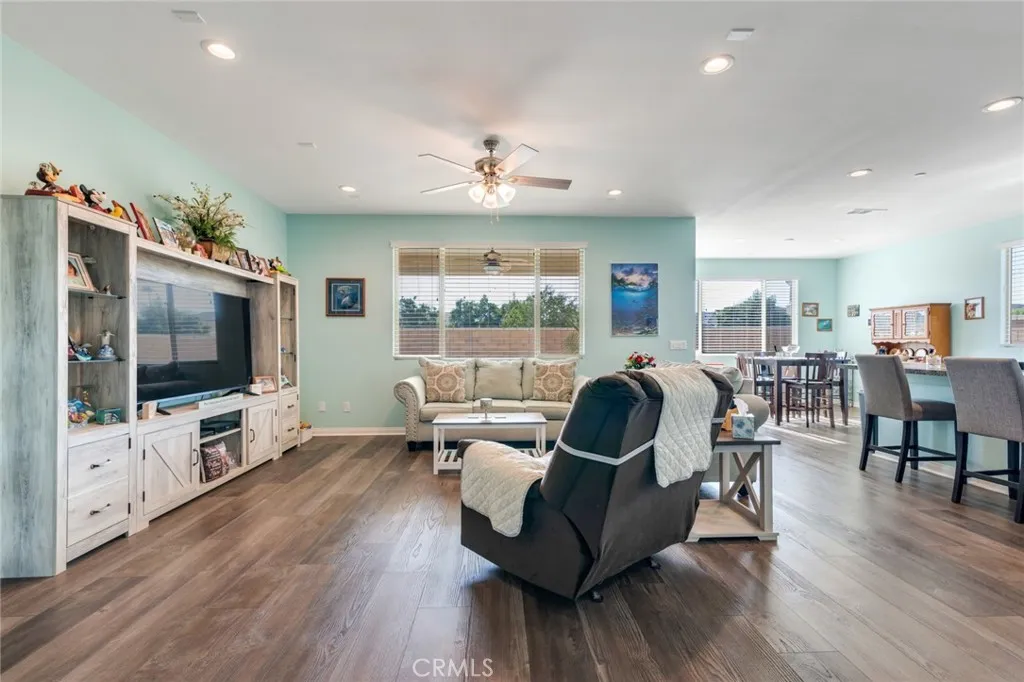 Welcome to Banner Park!! This well-maintained 3 bedroom 2 bathroom home has many upgrades and also has a flexi-room with double doors. The floor plan in an open concept and is designed for modern living. In the kitchen you will find granite counte tops, an island, and ugraded faucets. Throughout the home there is upgraded vinyl flooring with carpet in the bedrooms and flexi room. You will find recessed lighting throughout the home and the family room is wired for surround sound. The main bedroom has a walk-in shower, 2 single vanities and a walk-in closet. There is a separate laundry room with a washer hookup and gas dryer hookup. The 2 car attached garage features epoxy flooring. The front yard is landscaped with a sprinkler system and the backyard has a covered patio area and is ready for you to create your own space. The home also features solar panels and an area to install and EV charging station. Centrally located to the 215 Fwy, shopping centers, schools, and parks.
