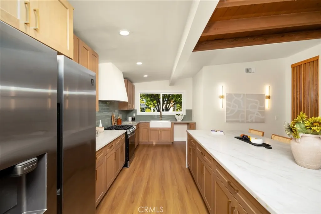 Welcome to this stunning 3-bedroom, 2-bath mid-century modern home, completely reimagined with no expense spared. Every detail blends timeless architecture with high-end modern finishes. Inside, the open floor plan seamlessly connects the living, dining, and kitchen areas, creating a perfect space for both entertaining and everyday living. Natural light fills the home, highlighting clean lines, luxury finishes, and quality craftsmanship throughout. The front and backyard have been fully renovated, offering a private retreat with tasteful landscaping and stylish outdoor living spaces. Located in a highly desirable Encino neighborhood, this home is near top-rated schools, parks, shopping, dining, and recreation. A true blend of timeless design and modern luxuryready to move in and enjoy.