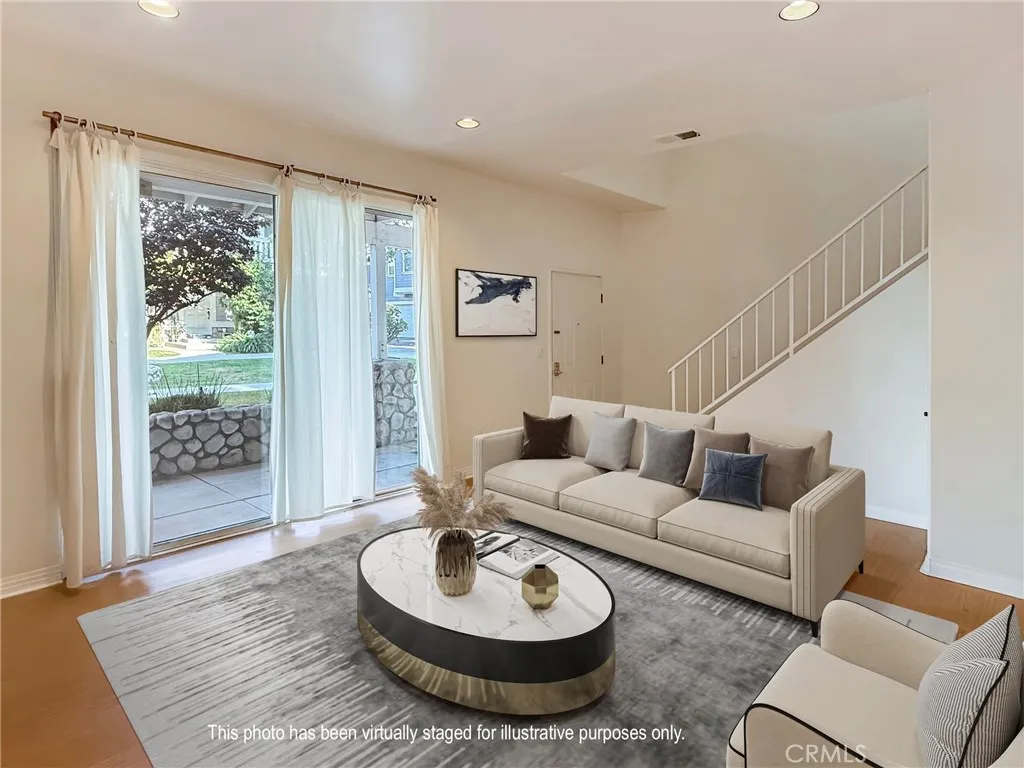 This beautifully maintained Pasadena residence, set within a contemporary-style complex, blends comfort, function, and charm. A landscaped courtyard with mature trees and a central fountain creates a peaceful, park-like environment that enhances the communitys appeal. The spacious living room is bathed in natural light from sliding doors that open to a private front patio overlooking the courtyardperfect for relaxing or entertaining guests. The kitchen features generous cabinetry, tile flooring, and essential appliances including a refrigerator, gas range with hood, dishwasher, and disposal. Seamlessly connected to the dining area, it offers a welcoming space for daily living and shared meals. Upstairs, two bright bedroom suites provide privacy and tranquility. The primary suite includes a walk-in closet and private ensuite bath, while the second bedroom offers dual mirrored closets and a convenient dual-entry bath. A hallway laundry closet adds everyday ease. Additional highlights include central A/C, recessed lighting, laminate and tile flooring, plus direct access to a two-car attached garage. The homes versatile layout adapts easily to changing needs, making it both practical and inviting. Beyond the community, residents enjoy convenient access to shops, dining, parks, and cultural landmarks such as the Rose Bowl Stadium, JPL, and The Huntington Library. Whether as a comfortable starter home or a smart investment, this property delivers value, convenience, and enduring appeal.