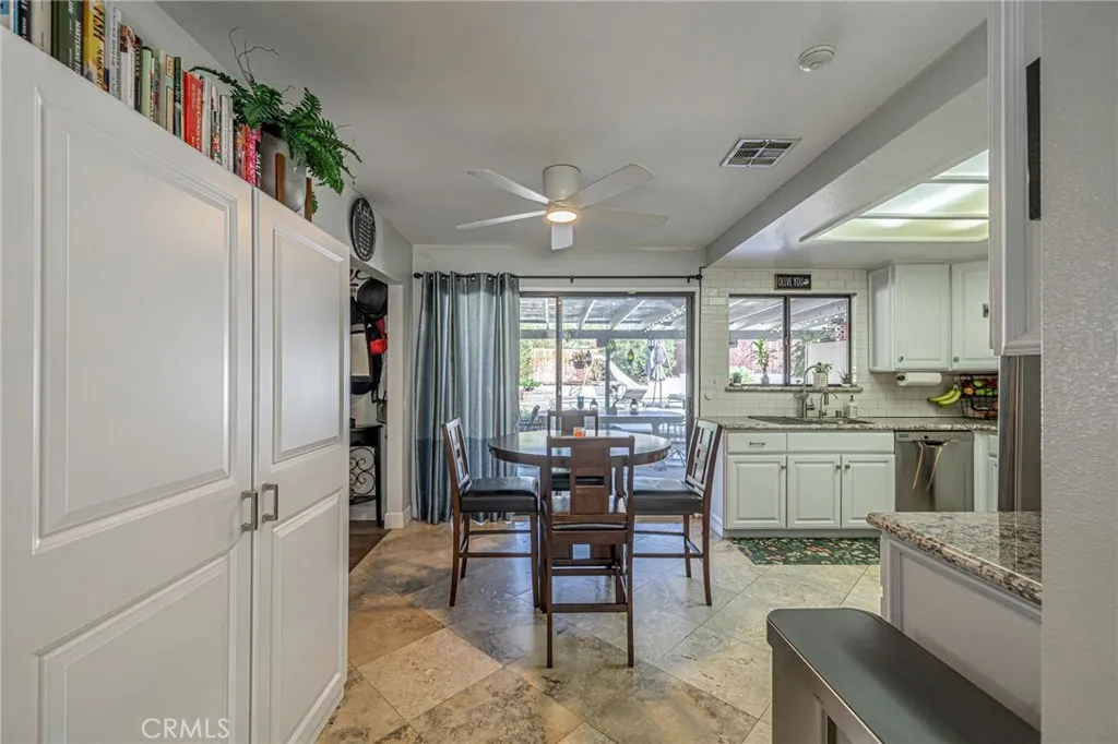 This nineteen eighty-seven built home in a desirable cul-de-sac location has sixteen hundred thirty-six square feet with a permitted family room addition with beautiful wood look plank flooring and a bar. Sitting on an eleven thousand two hundred square foot lot, it features an in-ground pool and above-ground spa. The interior shines with modern fixtures, pastel paints, new carpets, wooden window blinds. There are 3 bedrooms and two bathrooms. The bathrooms have also been upgraded with modern height sink cabinets, mirrors, raised toilets, shower enclosures, tile flooring. The kitchen has been upgraded with travertine flooring, granite countertops, and stainless appliances and painted cabinetry with brushed nickel hardware.. The backyard has a huge covered patio by the pool. a gardening area with raised planting beds, chicken coop and mature landscaping. This home is perfect for anyone looking to save money with a newer solar system in addition to seeking a stylish, move-in-ready single-story home in a prime spot