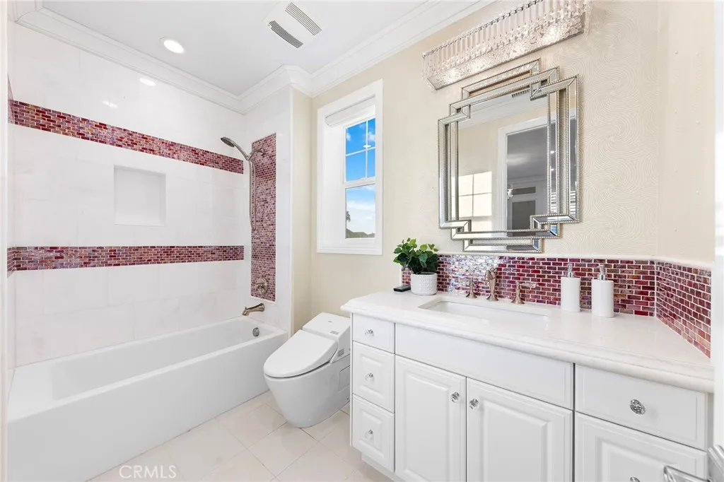 HUGE PRICE REDUCTION! PRICE TO SELL! MUST SEE TO BELIEVE! This customized and highly upgraded luxury home in The Great Park blends modern French aesthetics with European-imported materials, creating a truly unique and elegant living experience. Professionally designed by renowned interior designer w/over $1.7 million in upgrades. Largest Model in the Community, the home boasts the most desirable open floor plan with Imported natural stone and upgraded carpet. Kitchen opens to expanded great room w/ adjoining dining area & family room w/ built-in cabinets and High-end appliances. Large center islands with gorgeous quartz counter tops make the kitchen a great place not only for cooking but also for family gatherings and entertaining friends. Main floor bedroom & full bath, marble fireplace mantels, Italian made family room TV cabinet and upstairs with hardwood floors. Spacious master suite plus three additional en-suite bedrooms and an upstairs laundry room for added convenience. Expansive, flat backyard a rare gem in Irvine ideal for outdoor living and entertaining. Enhanced by $300K in Feng Shui-inspired landscaping with thoughtfully selected plants to promote prosperity and harmonious energy flow. Upgrades throughout include: Custom backsplash, Quartz Countertops, Subzero Refrigerator in Kitchen. Soundproof Media Room. Decorative wall panels in Great Room, inspired by Italian interior design. Marble Fireplace Mantle in Master Bedroom. Custom luxury furniture and draperies, transitional shades remote control for high ceiling & wood shutters. Custom 3D leather panels and w