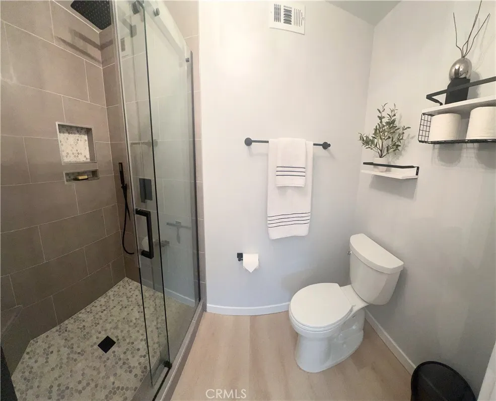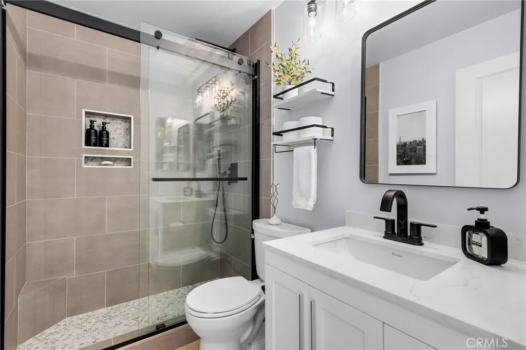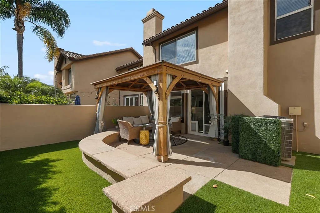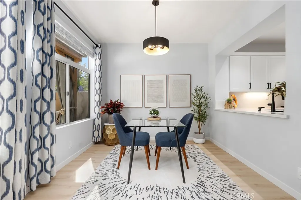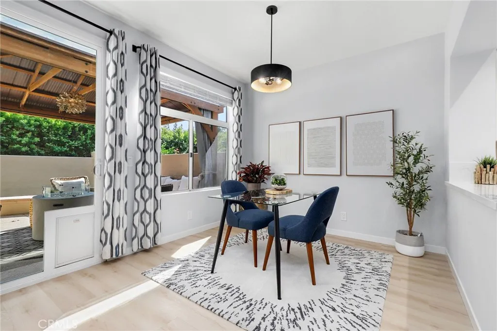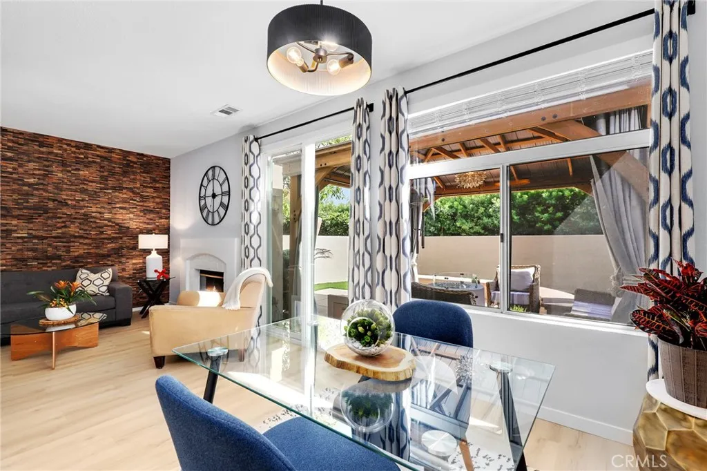 Welcome to 60 Meadowbrook, an immaculate home in the heart of Aliso Viejo. The inviting family room features a stylish accent wall and cozy fireplace, seamlessly opening to the dining area and kitchen. The kitchen boasts white cabinetry, quartz countertops with matching backsplash, stainless steel appliances, and direct access to the two-car attached garage with an extended driveway for extra parking. Sliding glass doors lead to a spacious and private backyard with low-maintenance artificial grass, perfect for entertaining or relaxing. A beautifully remodeled powder room completes the main level. Upstairs, the primary suite offers vaulted ceilings and a remodeled ensuite bathroom with a quartz vanity and walk-in shower. Two additional bedrooms share a remodeled full hall bathroom. Centrally located near Aliso Viejo Town Center, the 73 Toll Road, scenic trails, award-winning schools, and just a short drive to the beachthis home truly has it all!