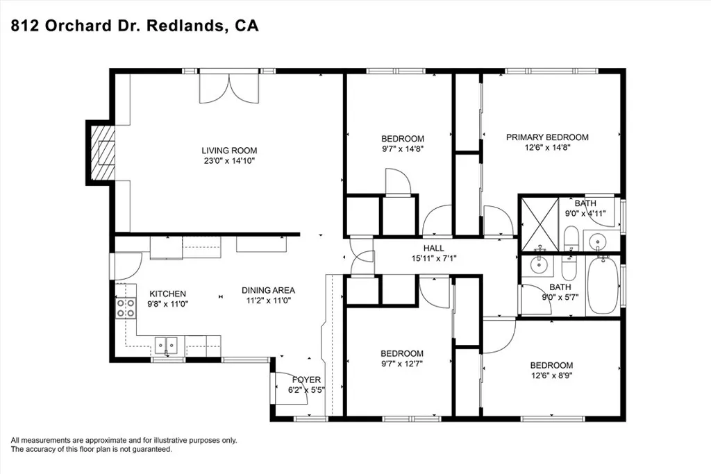 One level 4 Bedrooms +2 Bathrooms (1399 Sq. Ft.) Home. Mountain view. Fireplace in living room. The back yard has a covered patio, large pool with Spa perfect for relaxing and entertain. In addition, the back yard includes a grassy section and a fruitful vegetable garden to enjoy, fresh fruits and vegetables. Lot is (12,600 Sq. Ft.). House is on Cul-de-sac. Convenient location near shopping and a short drive to Charming and historic downtown Redlands. Solar Panels are paid for must see.