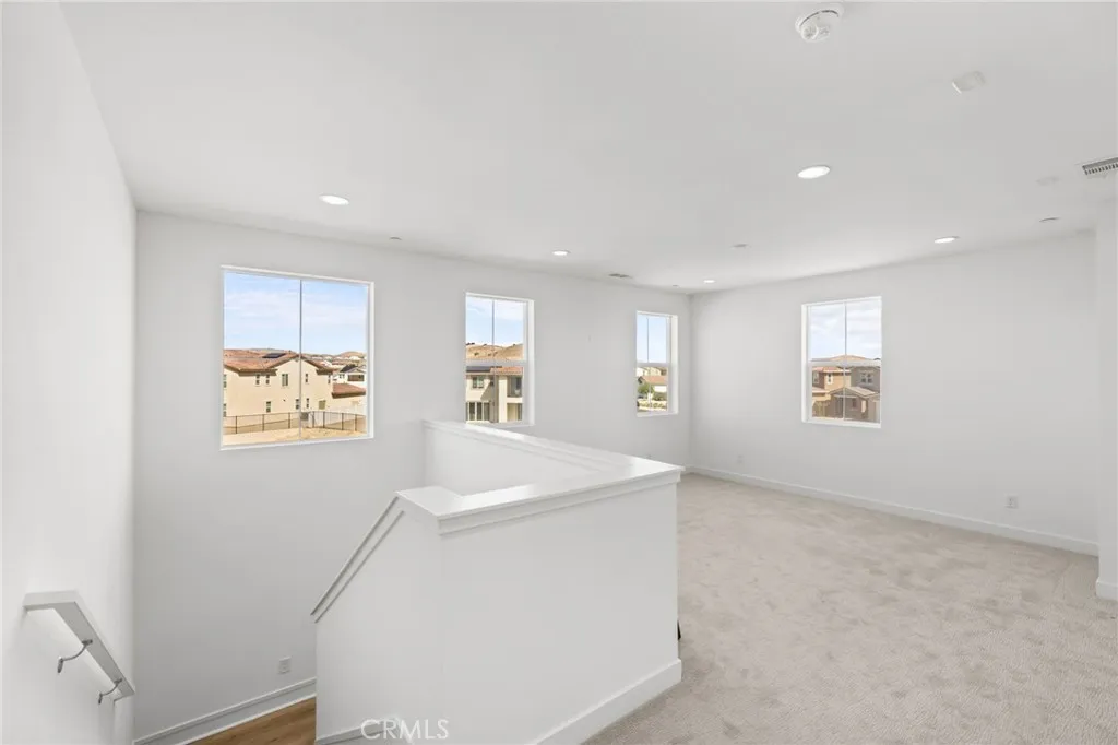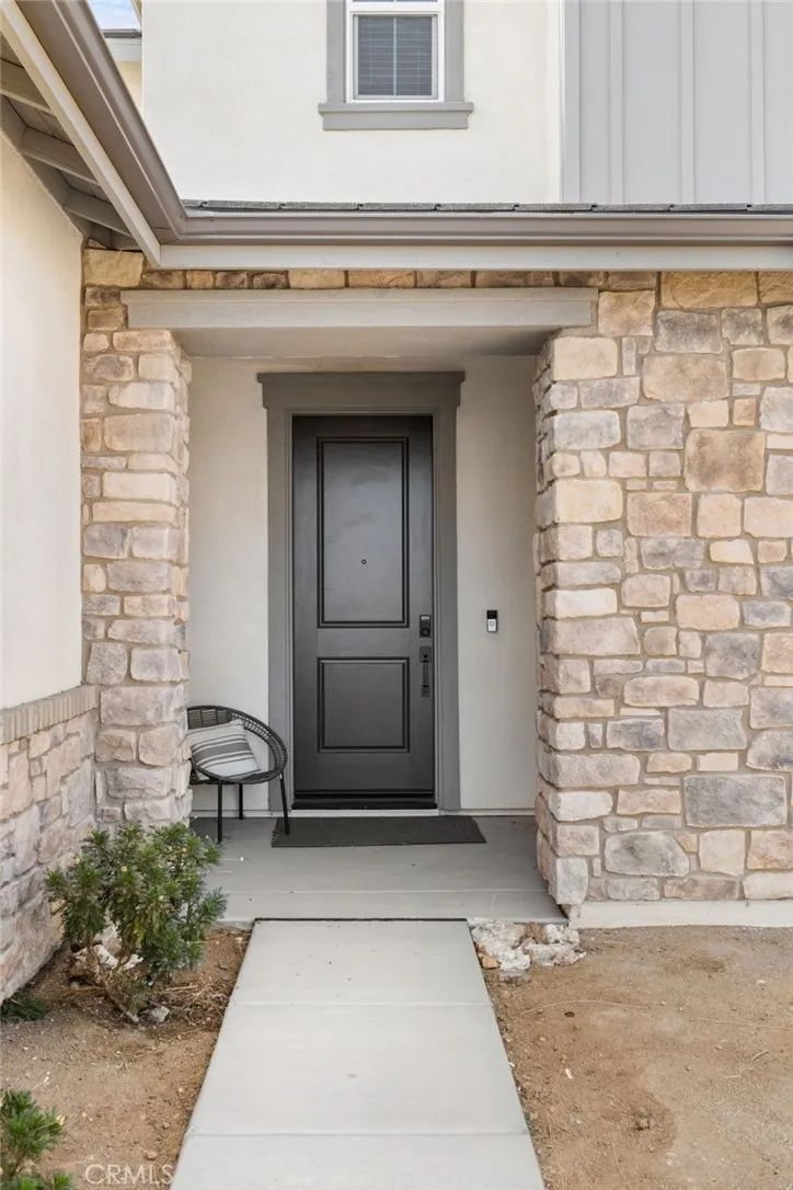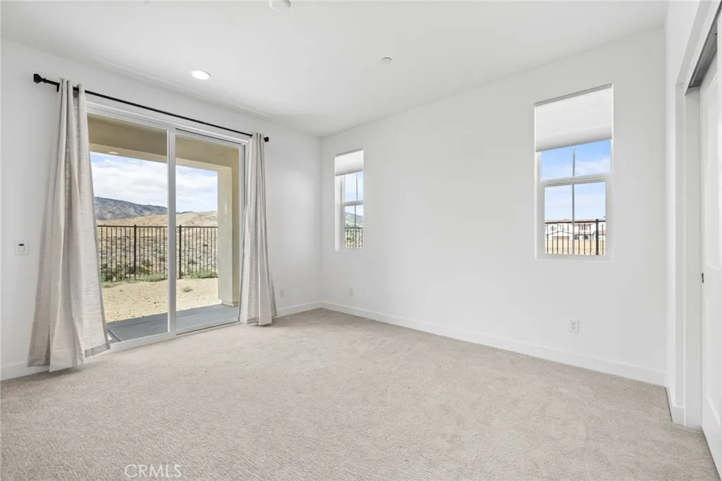 Welcome to this gorgeous 5 bedroom, 4.5 bath home offering expansive panoramic views and exceptional features throughout. This stunning estate is in the exclusive gated community of Joshua Ranch with breathtaking views-built in 2024. This West Palmdale community offers peace and the beautiful desert views. The spacious primary suite is a true retreat, featuring a private balcony, a spa-inspired ensuite bathroom with a soaking tub, oversized shower and a luxurious double vanity, along with a very generous sized walk-in closet. The main level includes a private office with barn doors and a guest bedroom with a full bath. There is also an additional half bath for guests. This is ideal for multi-generational living or visiting guests. The heart of the home is a gourmet kitchen complete with a massive center island topped with quartz counters and bar seating. The upgraded Bosch appliances include a 5 burner glass top oven, dishwasher and an additional single wall over and built-in microwave. The over sized living area features a dining space and a fireplace with lots of space for entertaining. Upstairs enjoy a spacious loft, 3 additional bedrooms, 2 additional full baths and a large laundry room with the washer and dryer included.. Additional features include exterior lighting, a covered patio, an oversized 3 car attached garage with an electric car charger and a paid solar system. Don't miss this home in one of West Palmdale's most desirable neighborhoods!