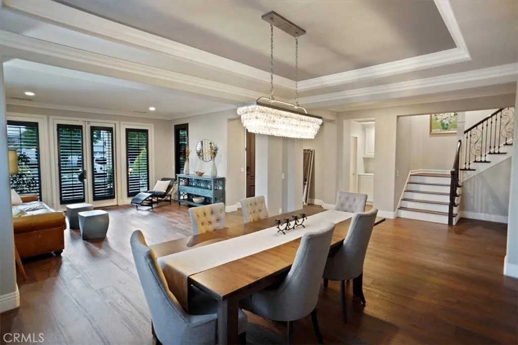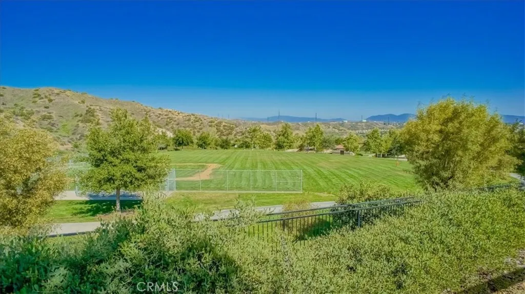 This magnificent home, located in Valencias prestigious Tesoro del Valle community, is a true showcase of luxury and craftsmanship. Built in 2004, this expansive single-family residence offers approximately 5,023 square feet of living space on a generous 8,462 sq ft lot, featuring 6 bedrooms and 6 bathrooms. Step inside to discover an atmosphere of elegance, highlighted by soaring ceilings, refined crown molding, and rich hardwood flooring that create a warm and inviting ambiance. The formal living room, accented by French doors that open to the front patio, flows seamlessly into a grand dining areaperfect for entertaining. At the heart of the home lies a gourmet kitchen, equipped with a custom tile backsplash, stainless steel appliances, a Sub-Zero refrigerator, Thermador microwave, GE Monogram stove, GE Profile double ovens, and a wine cooler. The kitchen opens to a bright breakfast nook and cozy den overlooking the backyard oasis. A convenient first-floor en-suite bedroom provides comfort and privacy for guests, complemented by a nearby powder room. Upstairs, four additional bedrooms include a luxurious primary suite with its own balcony offering scenic views, a spacious walk-in closet, dual vanities, solid marble slab shower walls, and a soaking tub. Two bedrooms share a Jack-and-Jill bathroom, while another features its own private bath. On the third level, a private suite includes a full bath and walk-in closetideal as a sixth bedroom, home office, theater, or playroom, offering exceptional versatility. The backyard retreat is designed for both relaxation and entertai