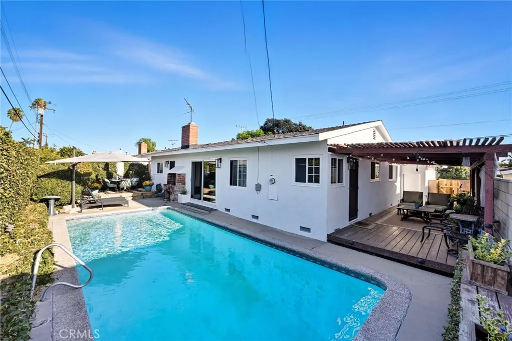 Cozy, entertainers delight in great location of Anaheim! This pool home features two deck areas for entertaining. Three bedrooms and two bathrooms with a unique floor plan that places one bedroom and bathroom on opposite side of the living room from the others. Formal dining area and living room with exit to the backyard pool areas. This home is ready to move in!