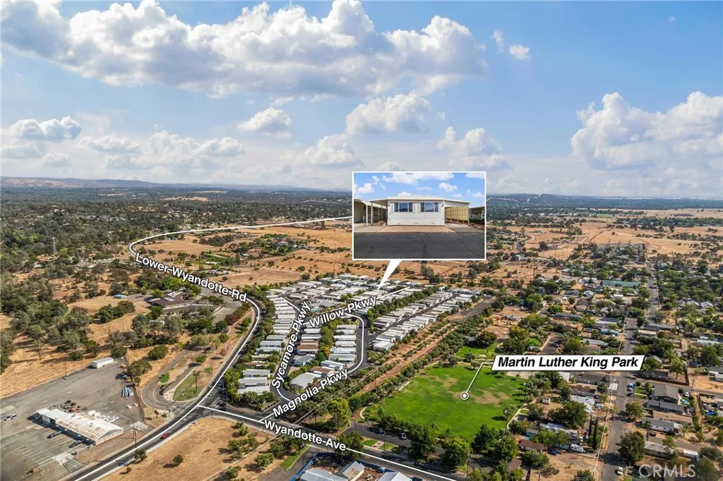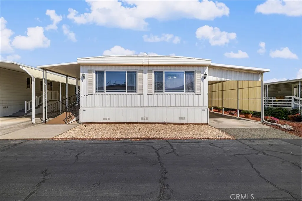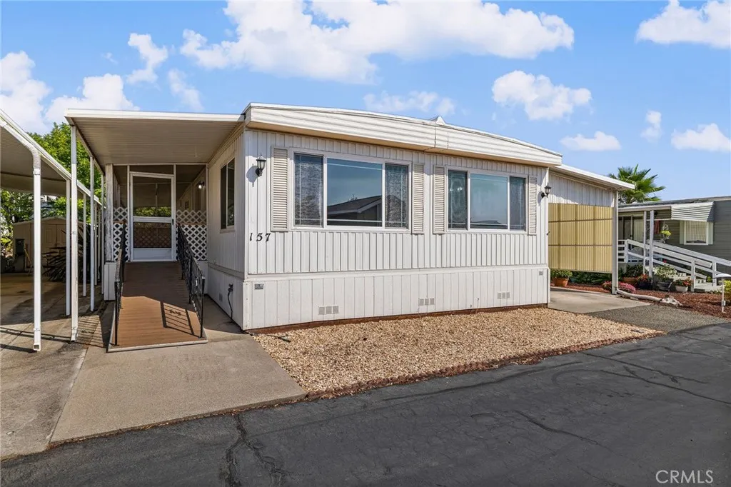 Welcome to Olive Hill, Orovilles preferred 55+ manufactured home communityknown for its clubhouse/rec hall, billiards, fitness room, library, RV storage and sparkling pool. Purchased in 2009 and thoughtfully improved through 2010, this turnkey home features big-ticket updates: HVAC, roof, dual-paned windows, handsome 8x20 wood decking, durable vinyl flooring and an easy access ramp. Inside, theres room to live and entertain with an oversized living room plus a separate family room. The 14' x 13.5' primary suite flows to a spacious ensuite with double sinks and dual closets. A generous guest bedroom provides comfort for visitors and has direct access to the common bath with a walk-in shower. The kitchen comes ready for move-in with the refrigerator and range included; washer/dryer convey as well. Out back, a quality wood-built shed offers the perfect small workshop or tinker room. Covered parking keeps you shaded year-round, and the deck is ideal for morning coffee or sunset chats. This home sits close to the clubhouse for easy access to amenities, while guest parking is just steps awaymaking visits simple and convenient. Resident events, a billiards room, and library invite new friendships; the heated pool and fitness room support an active routine. Move in, unpack, and start enjoying the Olive Hill lifestyle today.