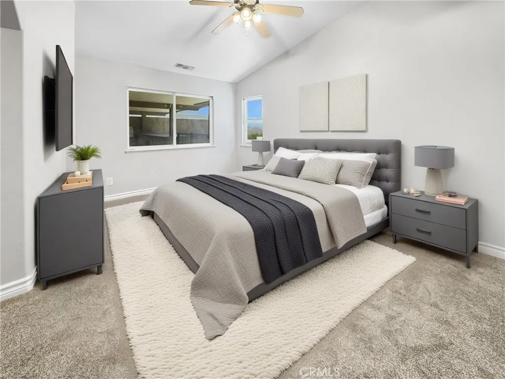 Step into your own private resort with this entertainers dream home, where every detail has been designed to elevate your lifestyle. Imagine sun-drenched afternoons spent around the shimmering Pebble Tec saltwater pool and spa, the soothing sound of a rock waterfall in the background, cool decking under your feet, and friends gathered around the built-in BBQ and bar while an outdoor gas fireplace flickers into the evening. Privacy and beauty surround you with custom stamped and etched concrete, a secure storage area for pool equipment, and a welcoming front courtyard that sets the tone the moment you arrive. The massive driveway provides endless vehicle storage possibilities, including room to park your RV or boat. Inside, light pours through tinted windows onto plush new carpet and luxurious laminate wood floors. The remodeled gourmet kitchen is as stunning as it is functional, with sleek European cabinetry featuring soft-close drawers and pull-outs, LED lighting above and below, granite countertops, a full custom backsplash, and upgraded black stainless Samsung appliancesincluding double oven, refrigerator, microwave, dishwasher, and a gleaming stainless farmhouse sink. In the heart of the home, the family room beckons with crown molding, shiplap wall, wood shutters, built-in desk, cozy fireplace, and an included 75-inch TV. Throw open the French doors and the indoors flow seamlessly to the expansive patio and pool beyond. Solar panels for both the home and pool, a whole-house fan, newer A/C condenser, and tinted windows keep comfort high and costs low. A massive primary